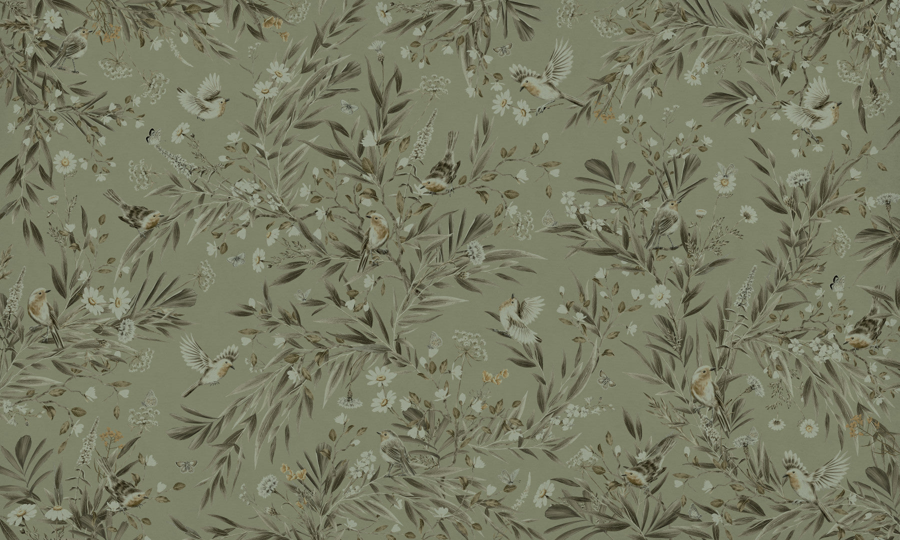 Embrace nature's charm with this botanical aviary. Detailed leaves and gentle birds form an elegant, inviting pattern. The cool colour palette gives any room, from a master bedroom to a cosy living room, a peaceful mood. This wallpaper for walls works beautifully as an accent, blending with vintage, classic or modern decor. It instantly elevates your living room, dining room, or bedroom.