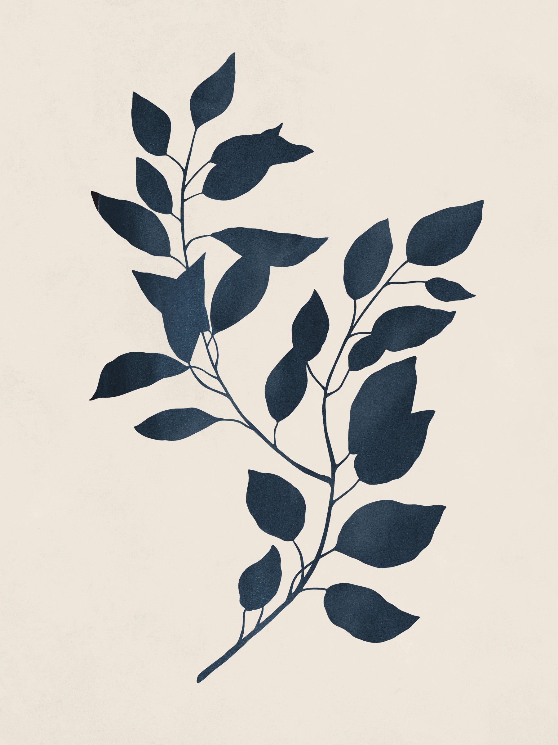 Experience tranquility with this wallpaper's captivating silhouette of a leafy branch rendered in deep indigo against a soft, off-white backdrop. The design's simplicity creates a peaceful ambiance, ideal for spaces where relaxation is key. The understated elegance of the navy blue leaves contrasts beautifully with the muted background, offering a calming visual experience that complements both modern and traditional interiors. This botanical-inspired wallpaper adds a touch of natural sophistication to bedrooms, living areas, and home offices, providing a serene escape from the everyday.