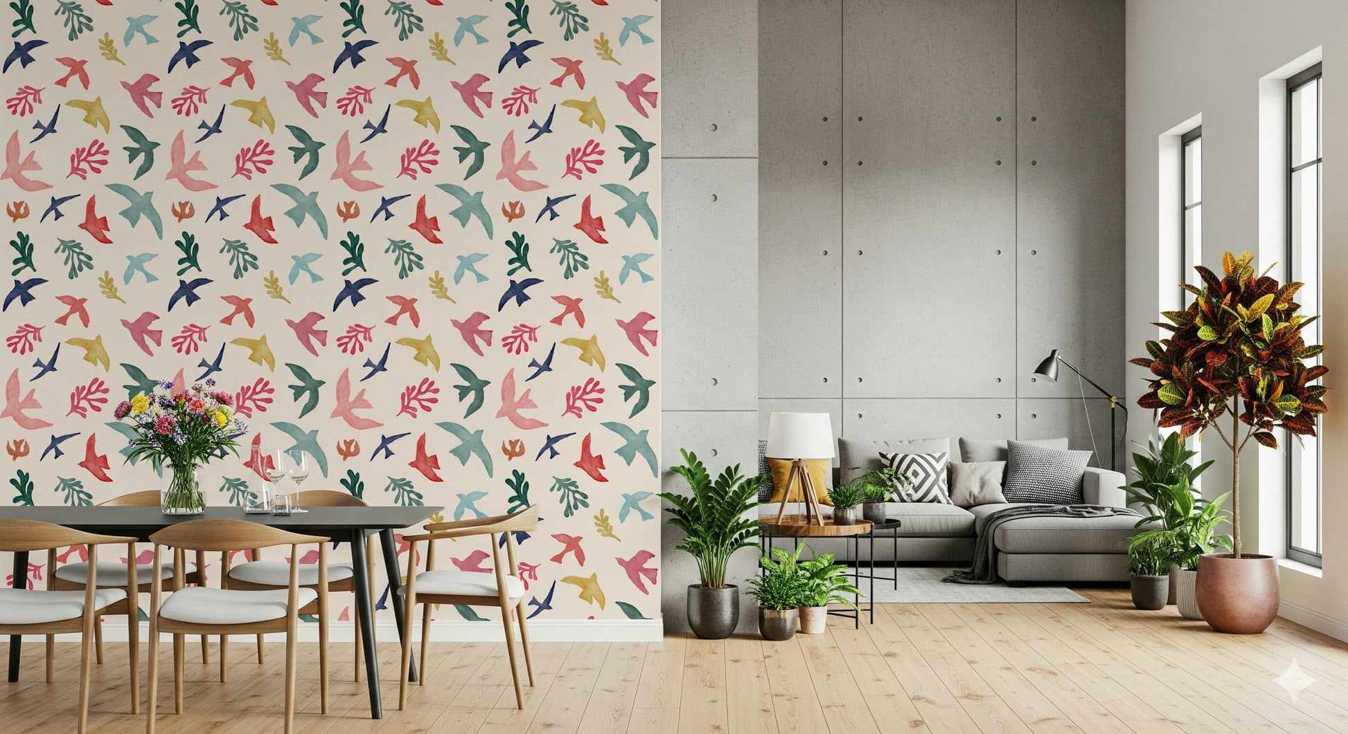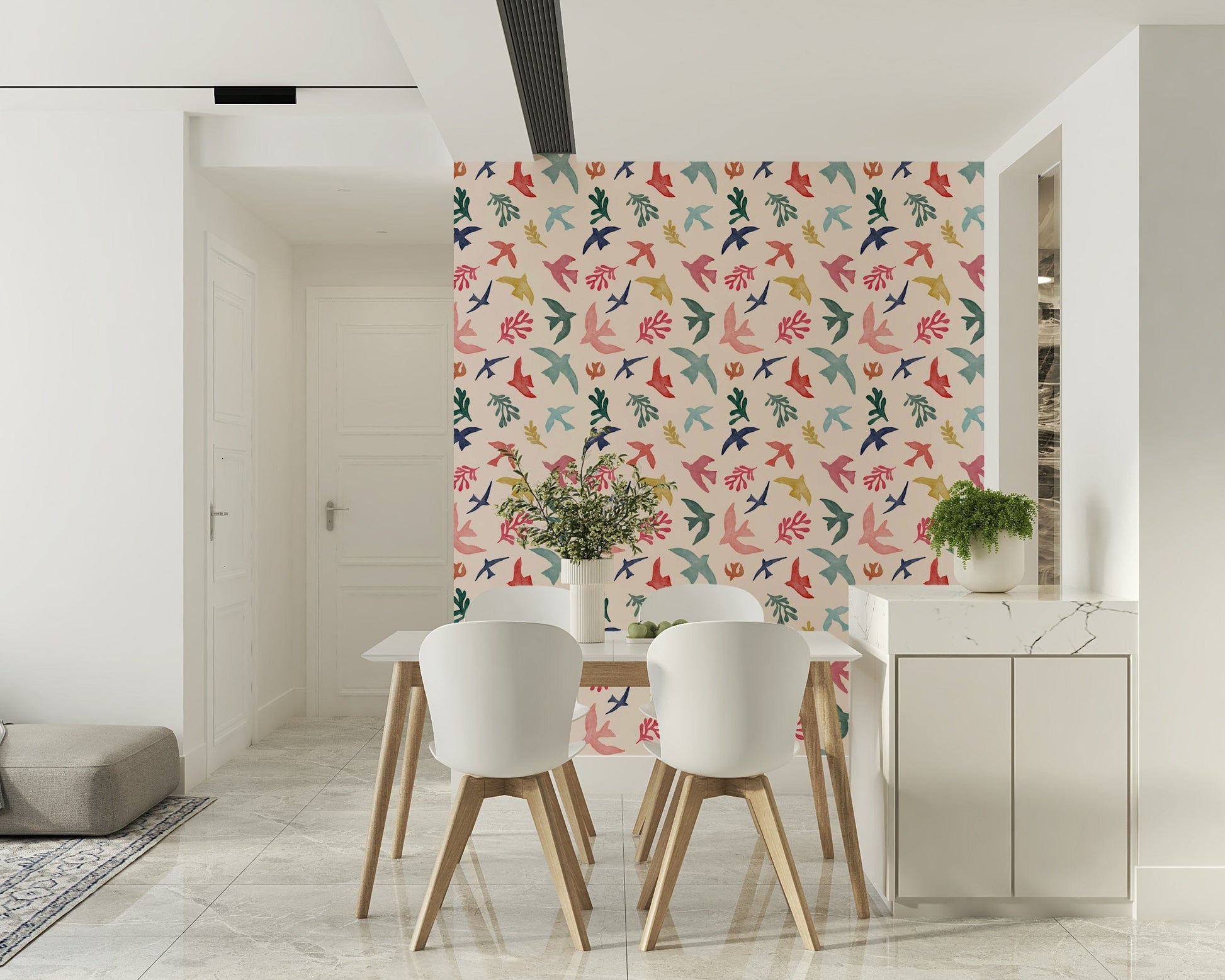 Transform your living space with Bright Freedom Birds, a lively wallpaper design that brings a burst of colour and joy to any room. Featuring vibrant birds in flight accompanied by delicate botanical elements, this pattern captures a sense of movement and freedom. Perfect for adding a touch of artistic flair to your home, this wallpaper invites nature indoors, creating a fresh and uplifting atmosphere. Ideal for bedrooms, living rooms, or creative spaces, it enhances your environment with its playful charm and harmonious design.