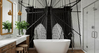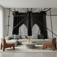 Immerse yourself in the architectural grandeur of "Brooklyn's Cables". This stunning black and white wallpaper captures the iconic Brooklyn Bridge from a unique perspective, emphasising its intricate network of cables. The powerful geometry and stark contrast create a visually compelling image, highlighting the bridge's monumental scale and structural complexity. Each cable, meticulously rendered, draws the eye and creates a sense of depth, inviting you to explore the craftsmanship behind this engineering marvel. Let the resolute strength and timeless elegance of the Brooklyn Bridge transform your screen into a striking statement piece, a testament to human ingenuity and urban beauty. Perfect for those who appreciate industrial chic and classic design.