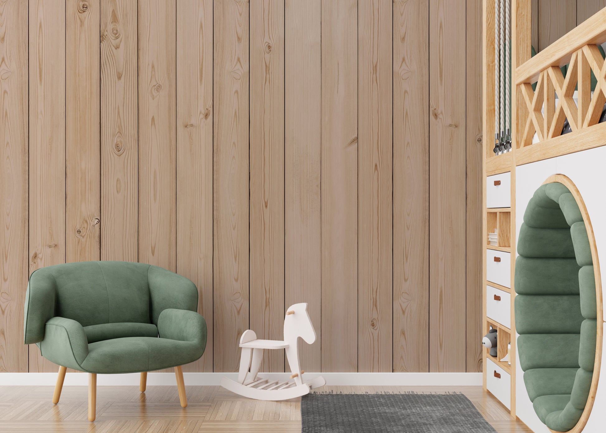 Elevate the aesthetics of your space with our brown natural wooden vertical striped mural wallpaper. Masterfully designed to emulate the timeless elegance of natural wood, this wooden stripe wallpaper for walls brings an essence of earthy warmth and serene sophistication into any room. Perfect as a bedroom wallpaper, it creates a comforting and cozy atmosphere, promoting restful sleep and relaxation.
