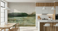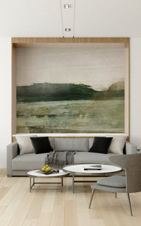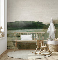 Bring a sense of calm to your space with this gentle landscape. This design features horizontal brushstrokes in muted greens, beige and white, creating an abstract horizon. The colours and texture give it a handcrafted feel. Install this wallpaper for walls in a bedroom or hallway to create a soothing mood. Its subtle beauty will enhance a modern or minimalist interior.