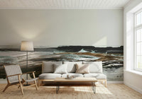 Bring an element of artistic expression to your home with this striking brushstroke design. Bold, sweeping strokes create a moody abstract landscape in shades of brown, teal and white. The simple colour palette keeps it versatile. Consider this wallpaper for walls in living rooms, bedrooms, or hallways to add character and a touch of drama. It complements minimalist or industrial interiors, balancing clean lines with organic textures. Invite visual interest into your space.