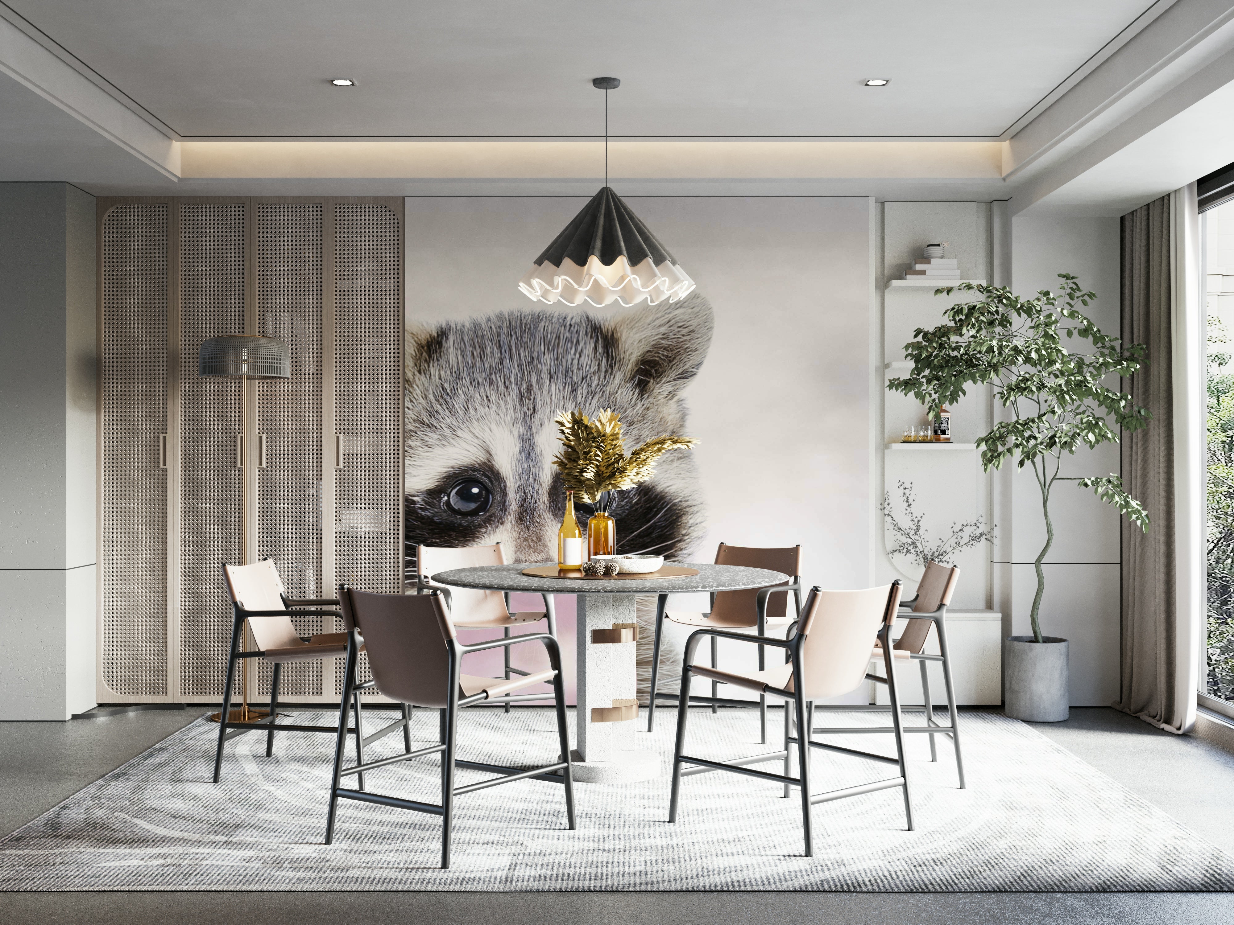 Whimsical bubble gum raccoon mural for playful spaces