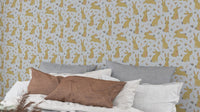 Bring charm to your child’s room or nursery with our Bunnies and Rabbits Golden Gray Wallpaper. This whimsical design features playful bunnies, soft florals, and subtle carrots in a soft golden hue against a muted gray backdrop. Perfect for creating a soothing and joyful space, it’s a delightful choice for kids’ rooms, play areas, or whimsical interiors. Crafted with premium quality, this wallpaper is easy to apply and remove—ideal for modern families seeking a stylish and fun wall solution.