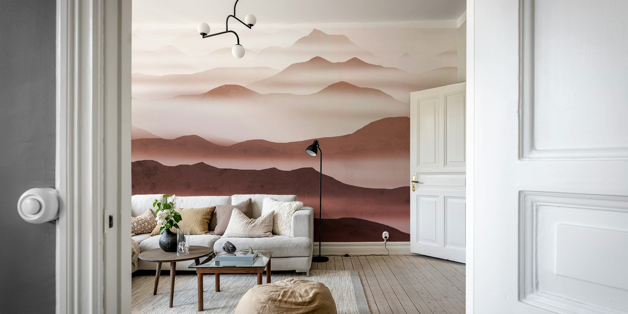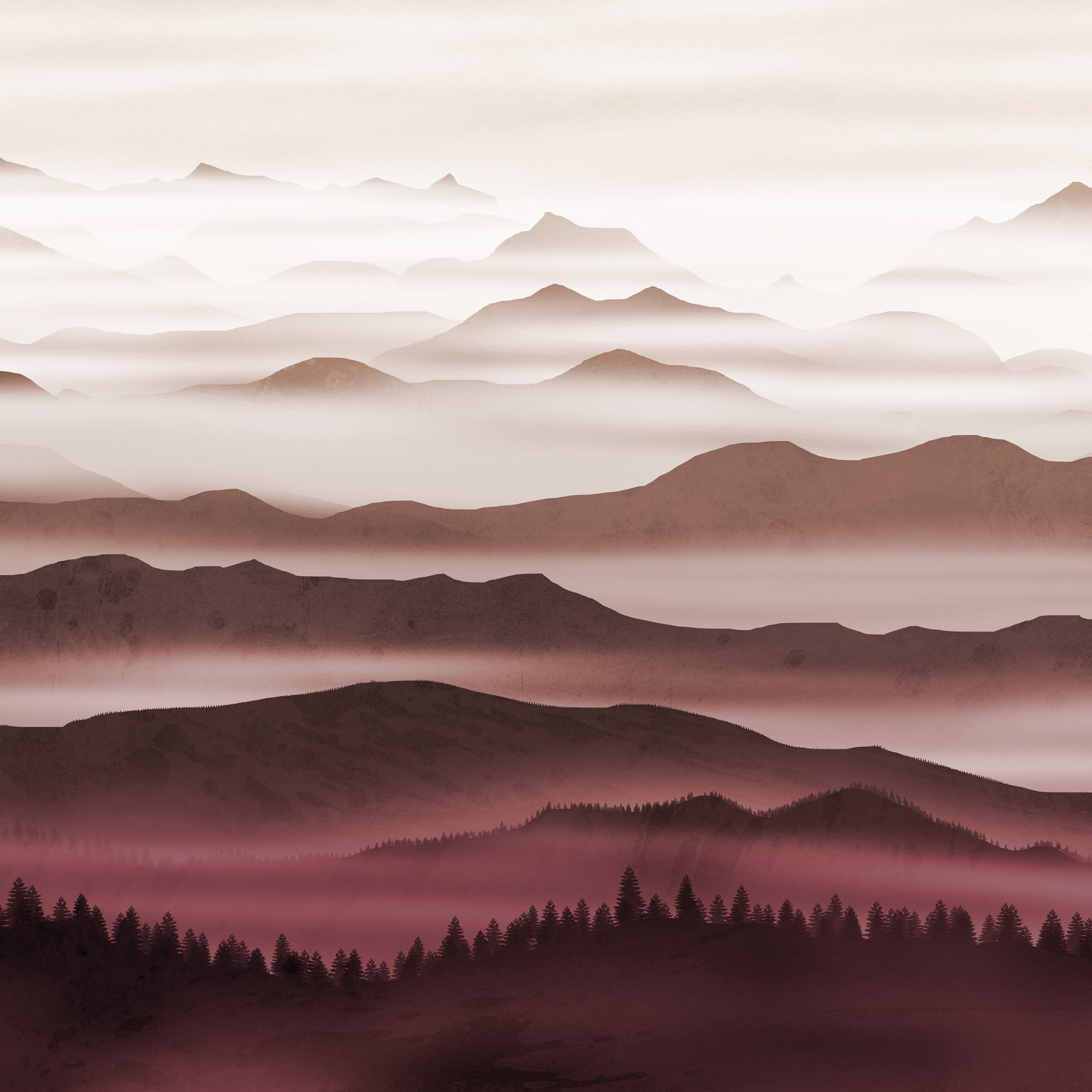 Escape to the tranquil embrace of 'Burgundy Mountain Haze,' a wallpaper that captures the essence of a misty mountain range. The deep burgundy tones create a sense of warmth and mystery, while the soft fog adds an element of dreamlike beauty. The layered peaks suggest depth and vastness, inviting the viewer to lose themselves in the serene atmosphere. Perfect for a space seeking sophistication and a touch of nature's calming influence. The image is rich in detail yet maintains a minimalist aesthetic, creating a harmonious balance for any modern interior.