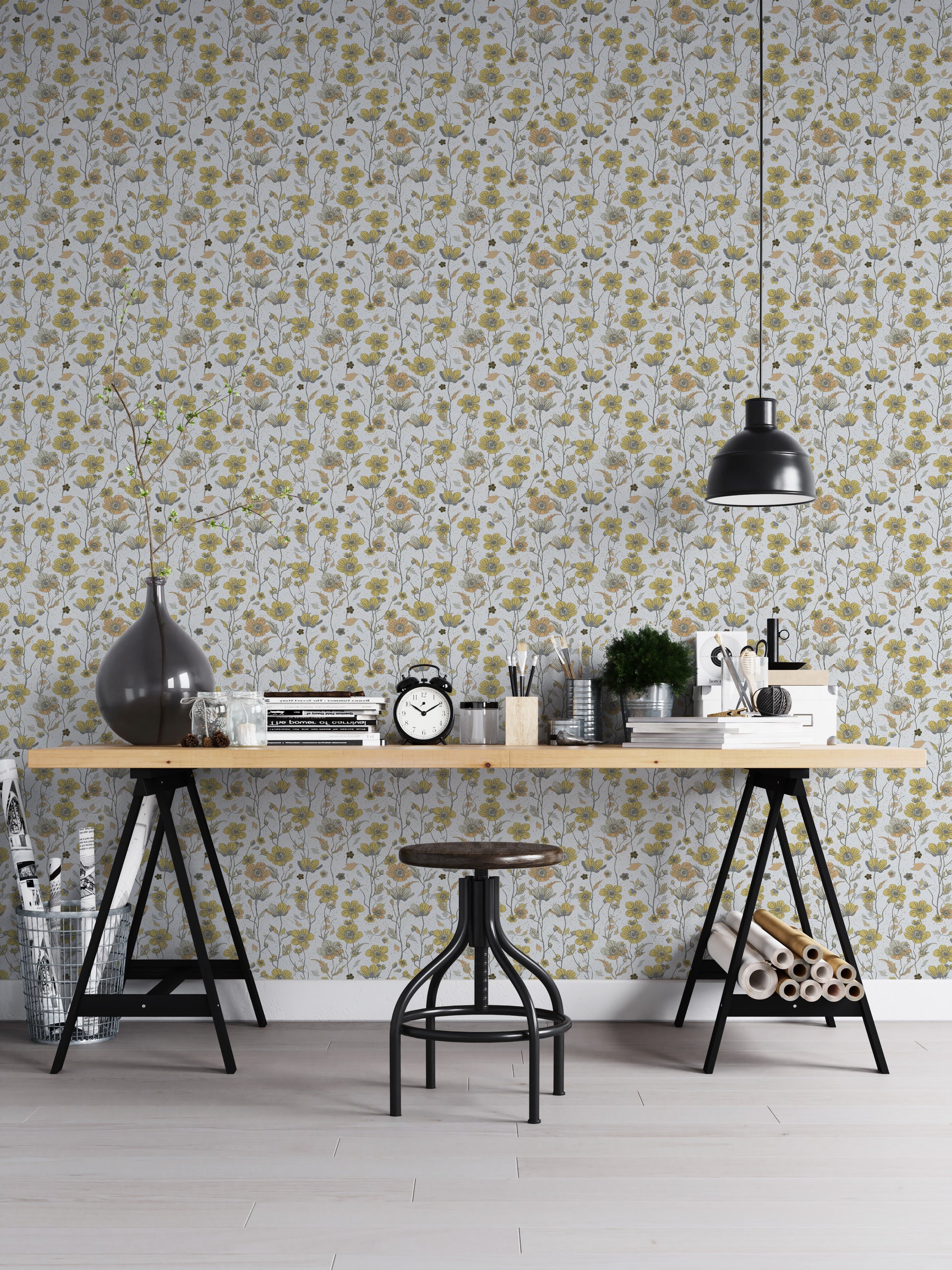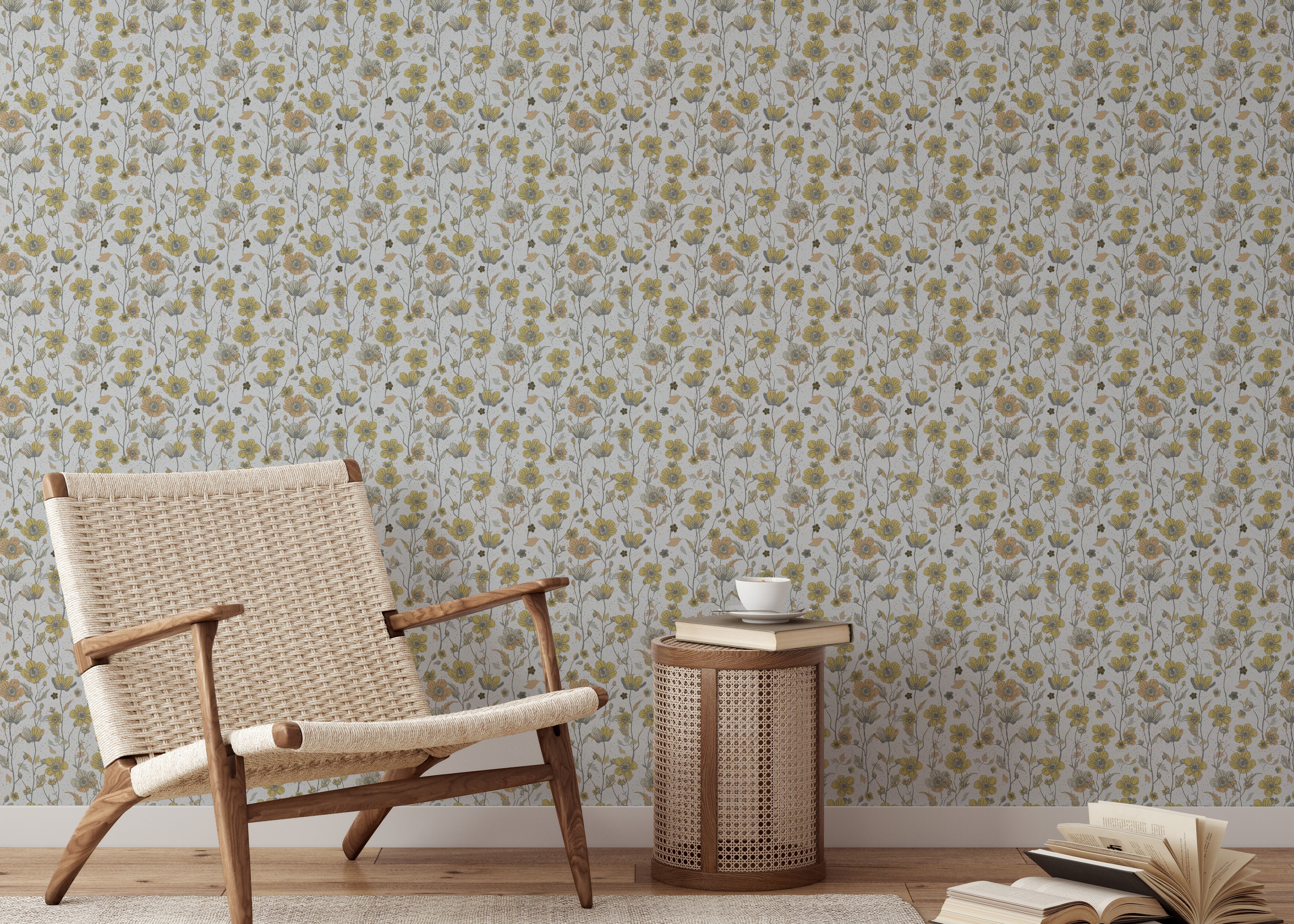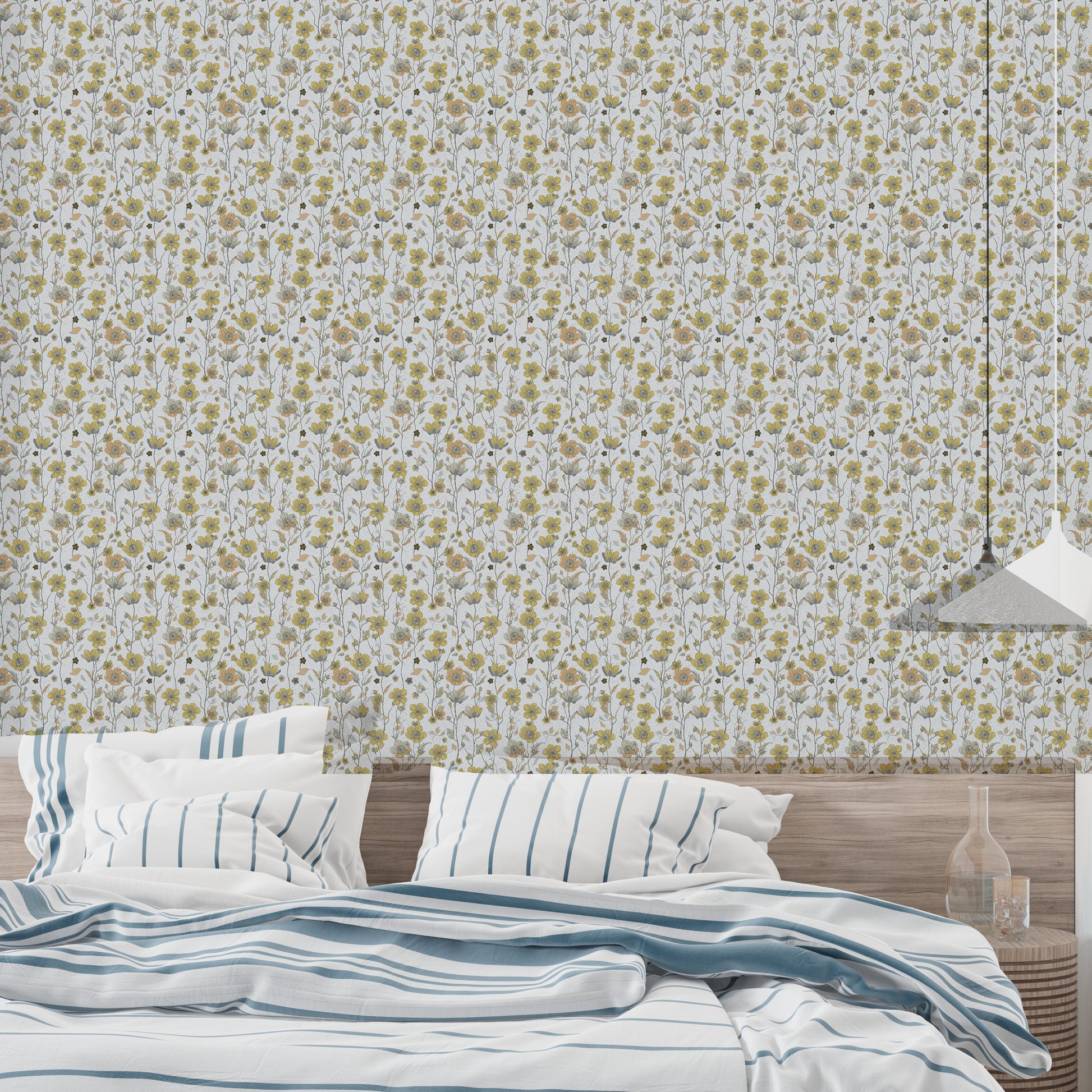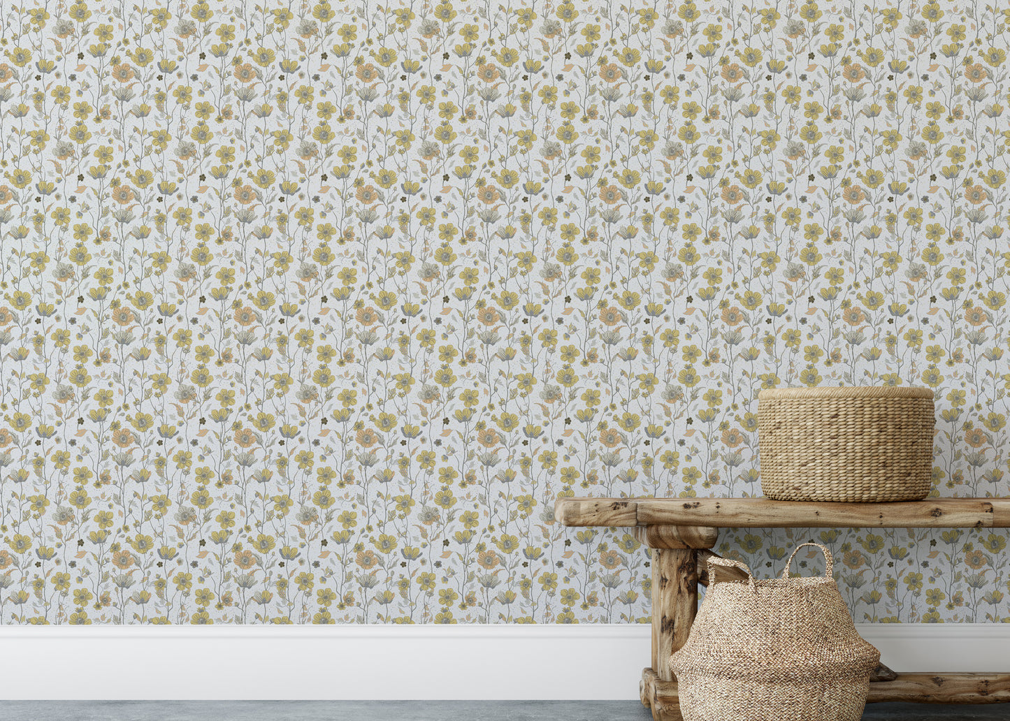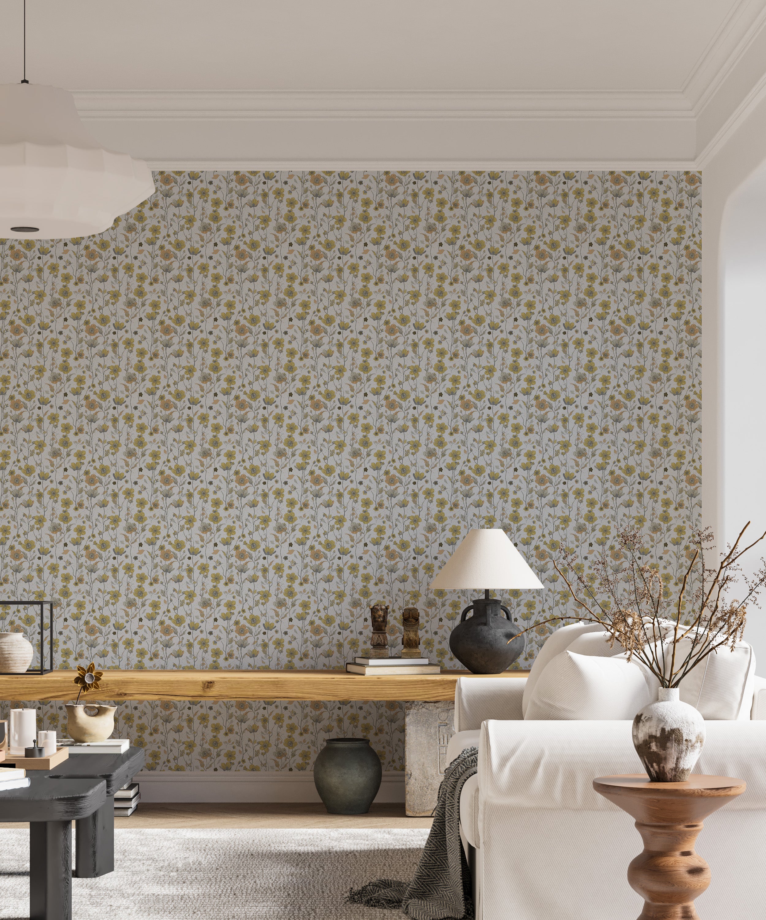 Step into a dreamy meadow with the Buttercups Garden Golden and Gray Wallpaper. Featuring delicate buttercup flowers blooming in soft golds, sage greens, and cool grays, this design adds a serene botanical charm to bedrooms, living areas, or entryways. The hand-drawn floral details evoke a vintage garden aesthetic, while the soft palette blends effortlessly with both modern and classic interiors. Made with peel-and-stick ease, it’s perfect for DIY decorators.