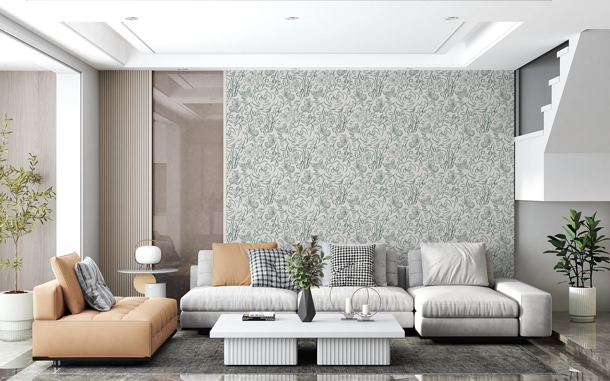 Butterfly Bloom Line Art Wallpaper⁠