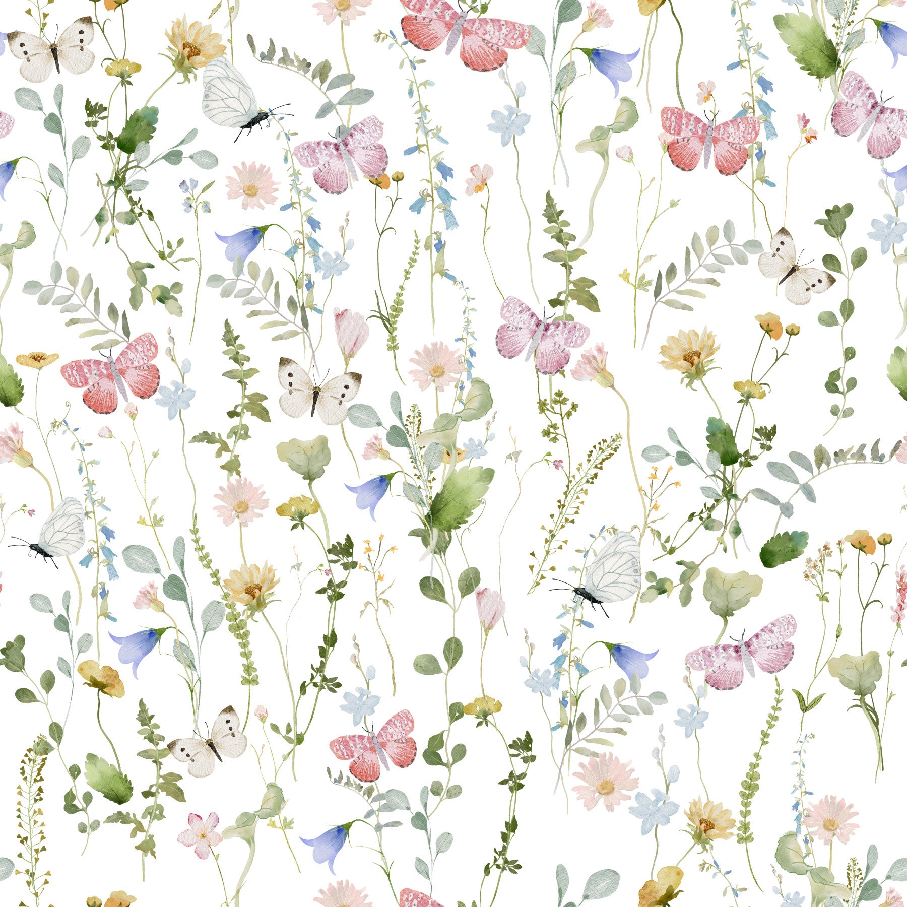 Butterfly Meadow design: airy floral pattern, perfect home decoration.