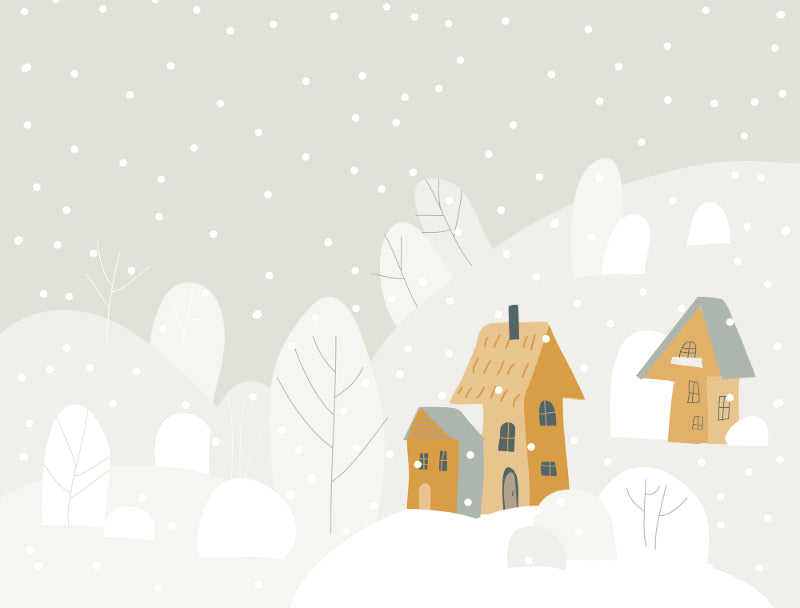 Introducing the cartoon alpine getaway mural wallpaper, a delightful addition to any nursery. This whimsical design captures the essence of a winter wonderland with charming cottages nestled among snow-draped hills. Soft hues of cream, ochre, and pale blue create a serene backdrop, perfect for stimulating the imagination of little ones. Each detail in this nursery wallpaper, from the snowflakes to the minimalist trees, adds to the storybook quality of the scene. Ideal for creating a cosy nook for storytelling or a playful corner for adventure, this mural is a beautiful centrepiece for a Kids room. Its gentle collars and playful design are sure to enchant and inspire young minds, making it a heartwarming selection for a space where dreams begin.