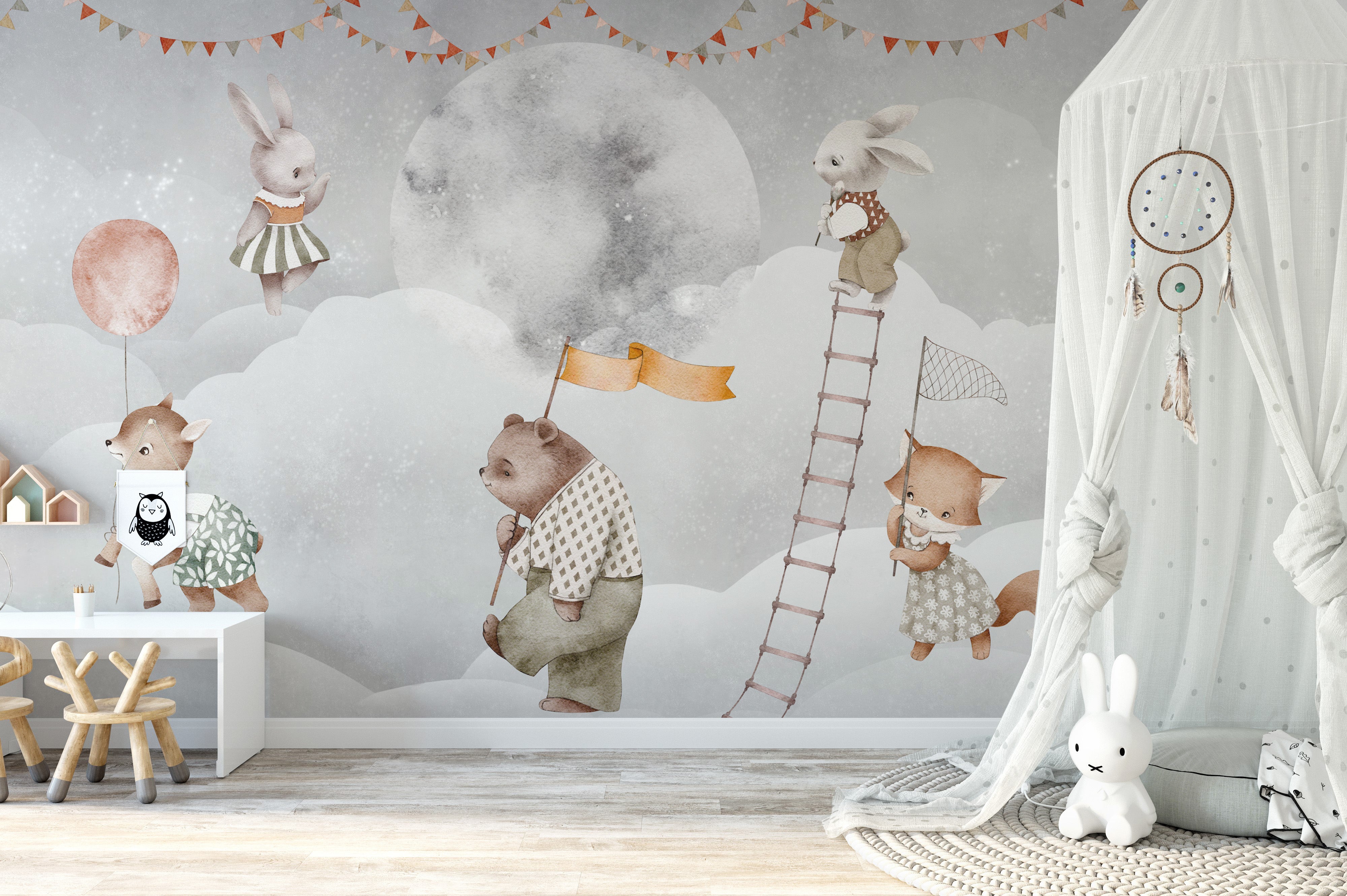 Animal cloud wallpaper for celestial-themed baby nurseries