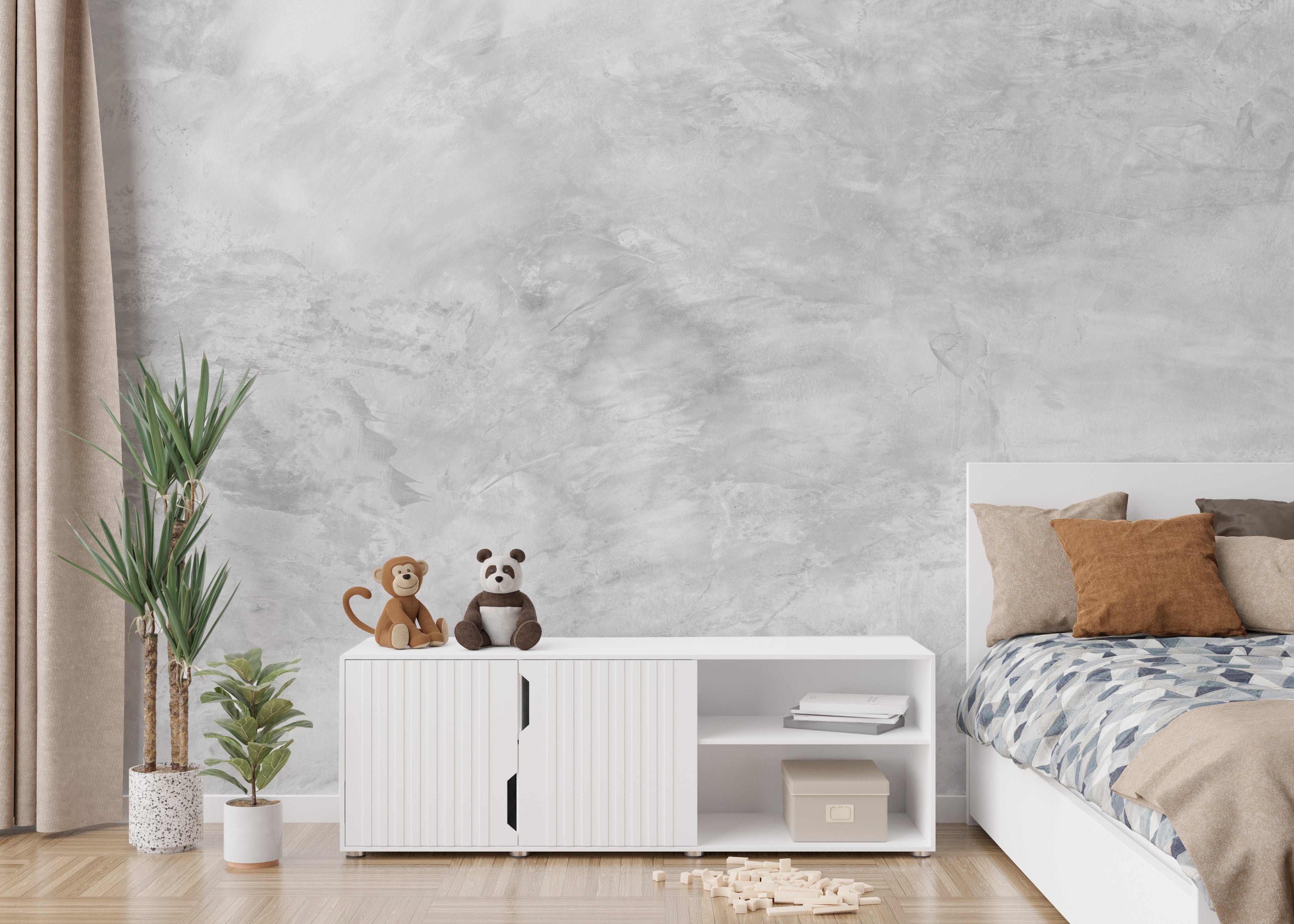 Distressed cement texture mural for a chic industrial vibe.