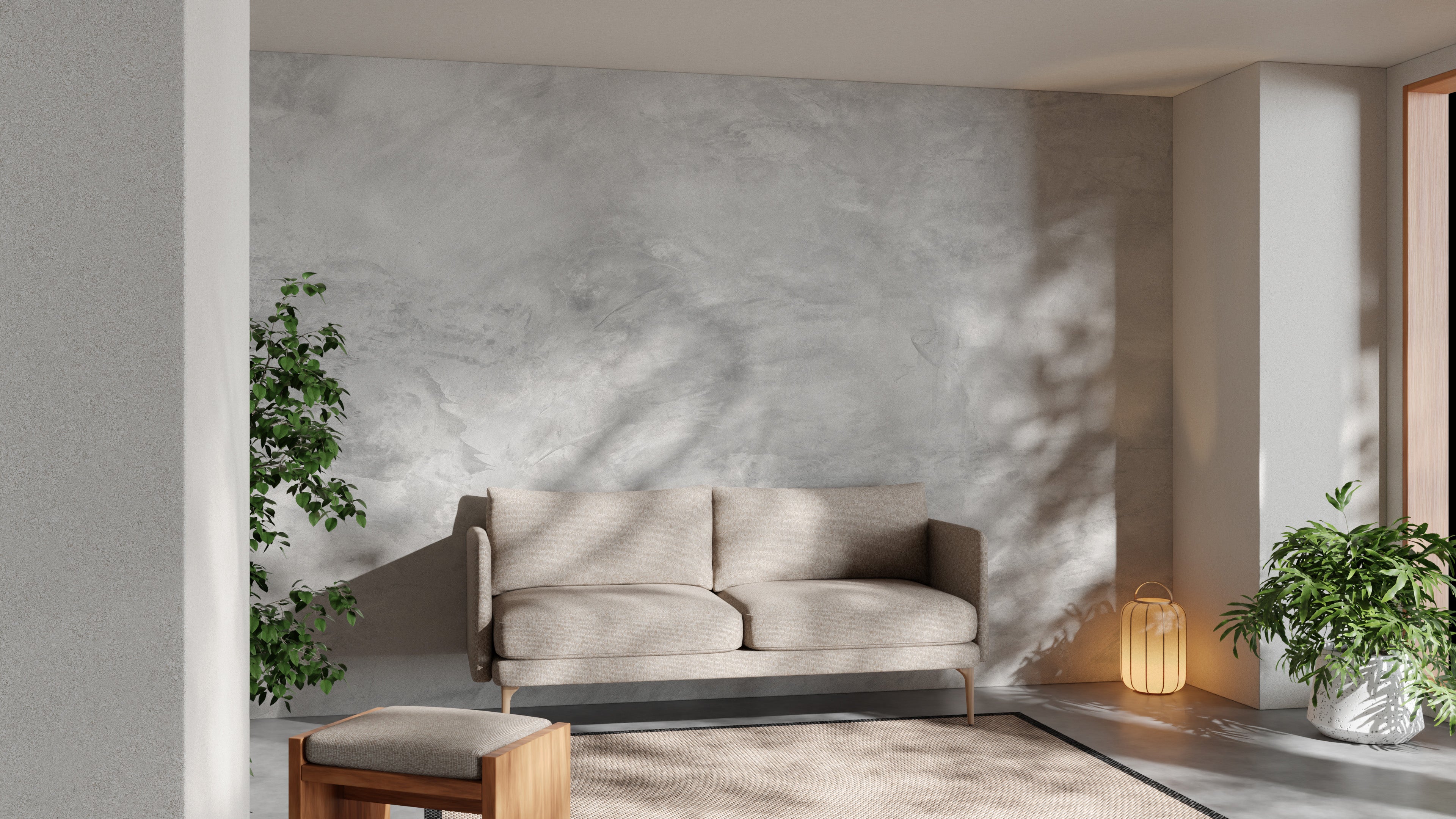 Raw cement-look wallpaper for edgy and contemporary interiors.
