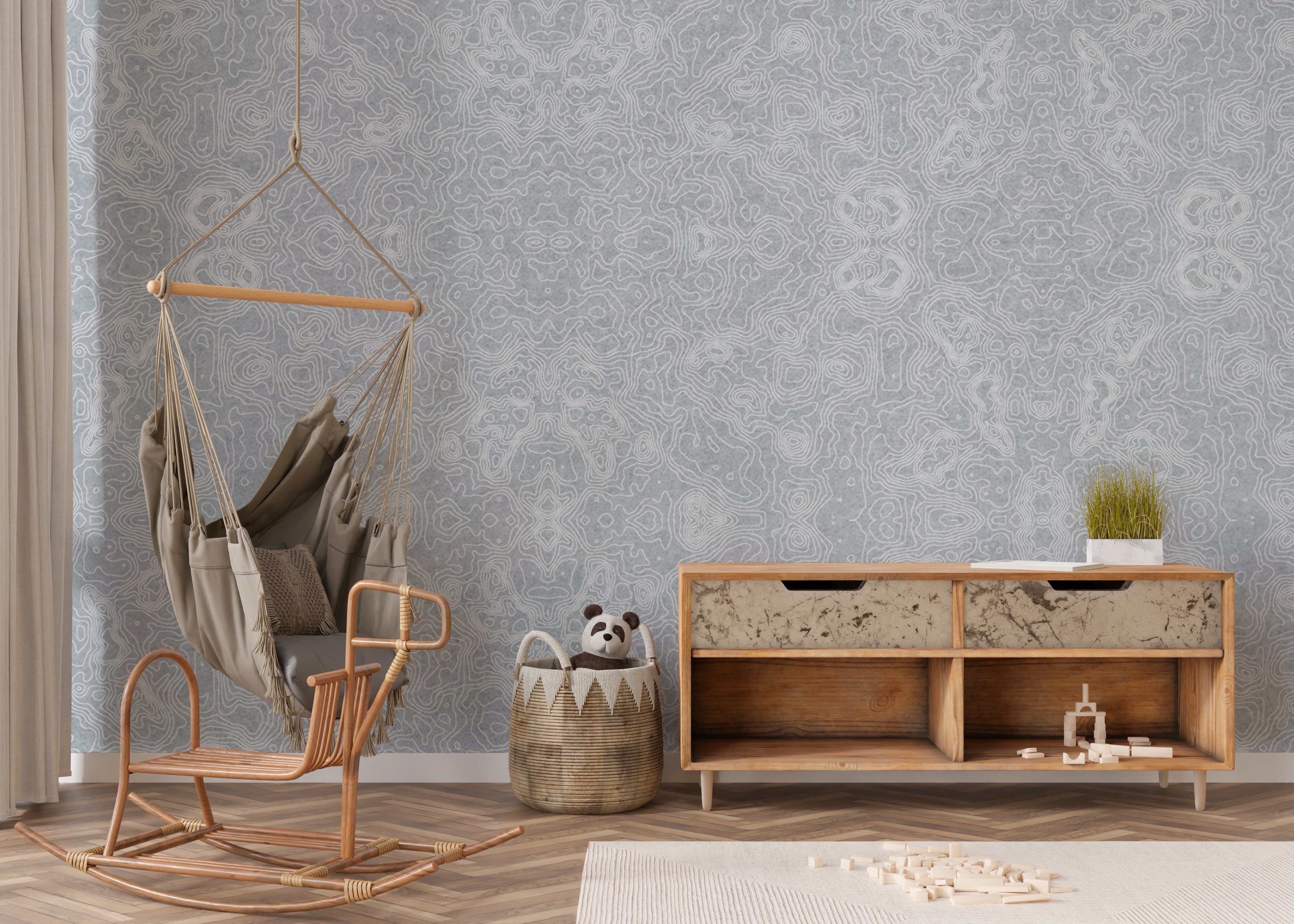 Elegant topographic pattern wallpaper in blue