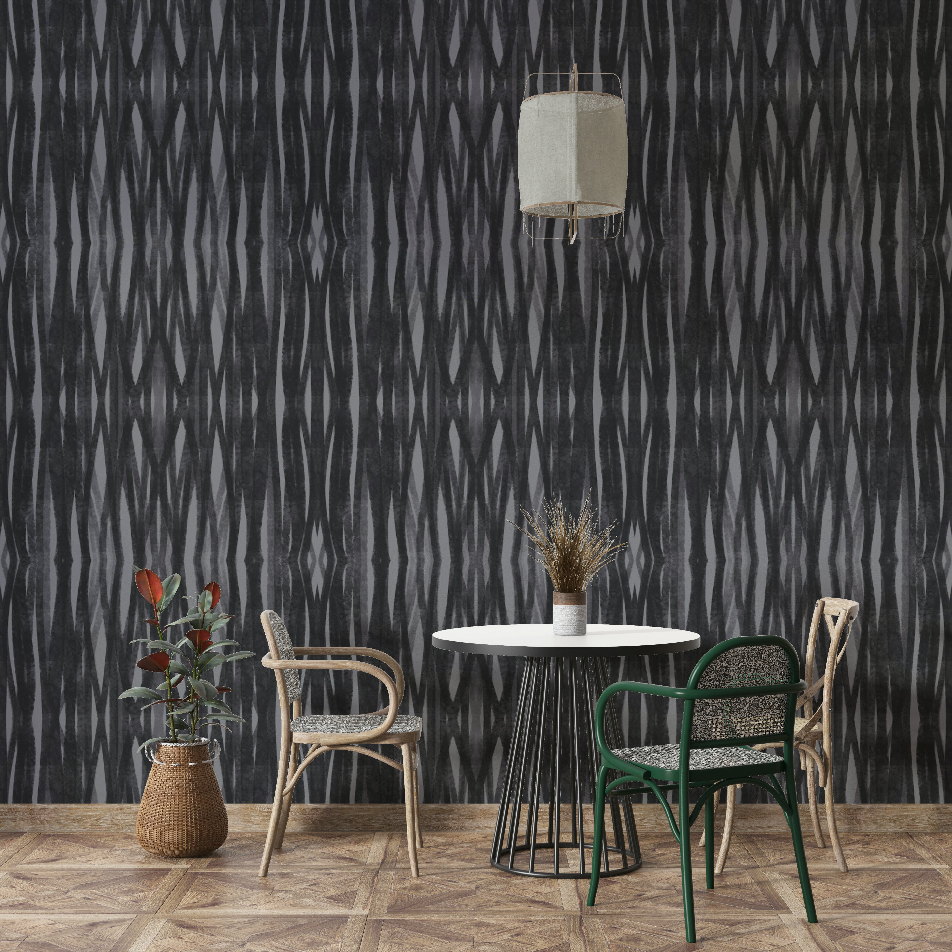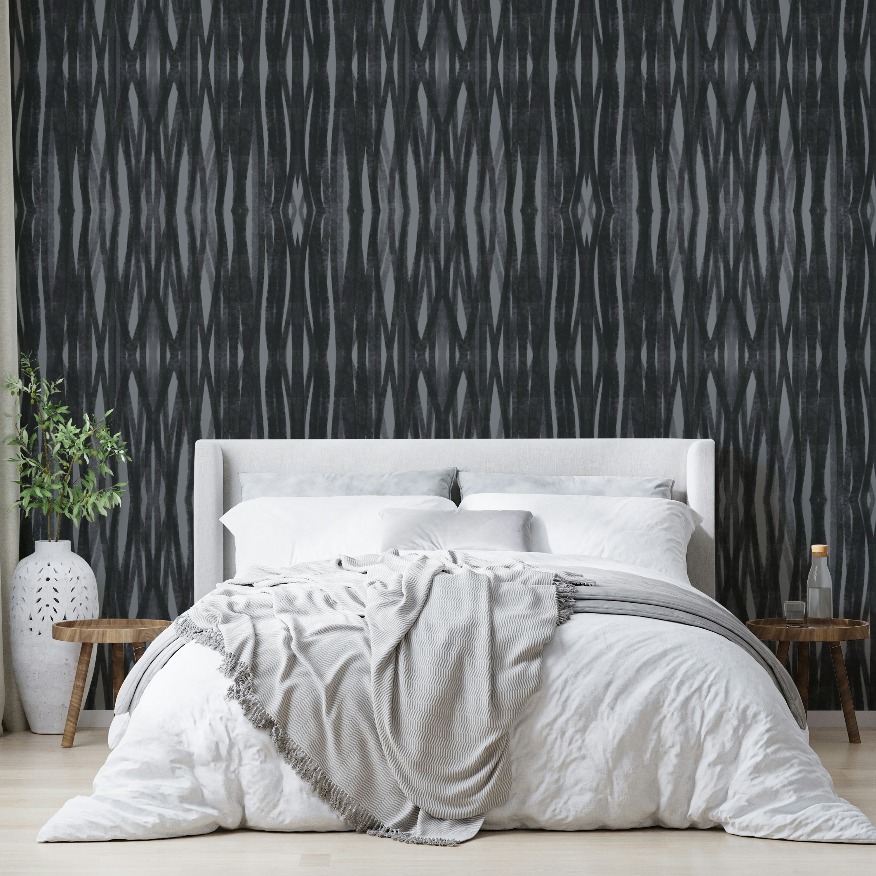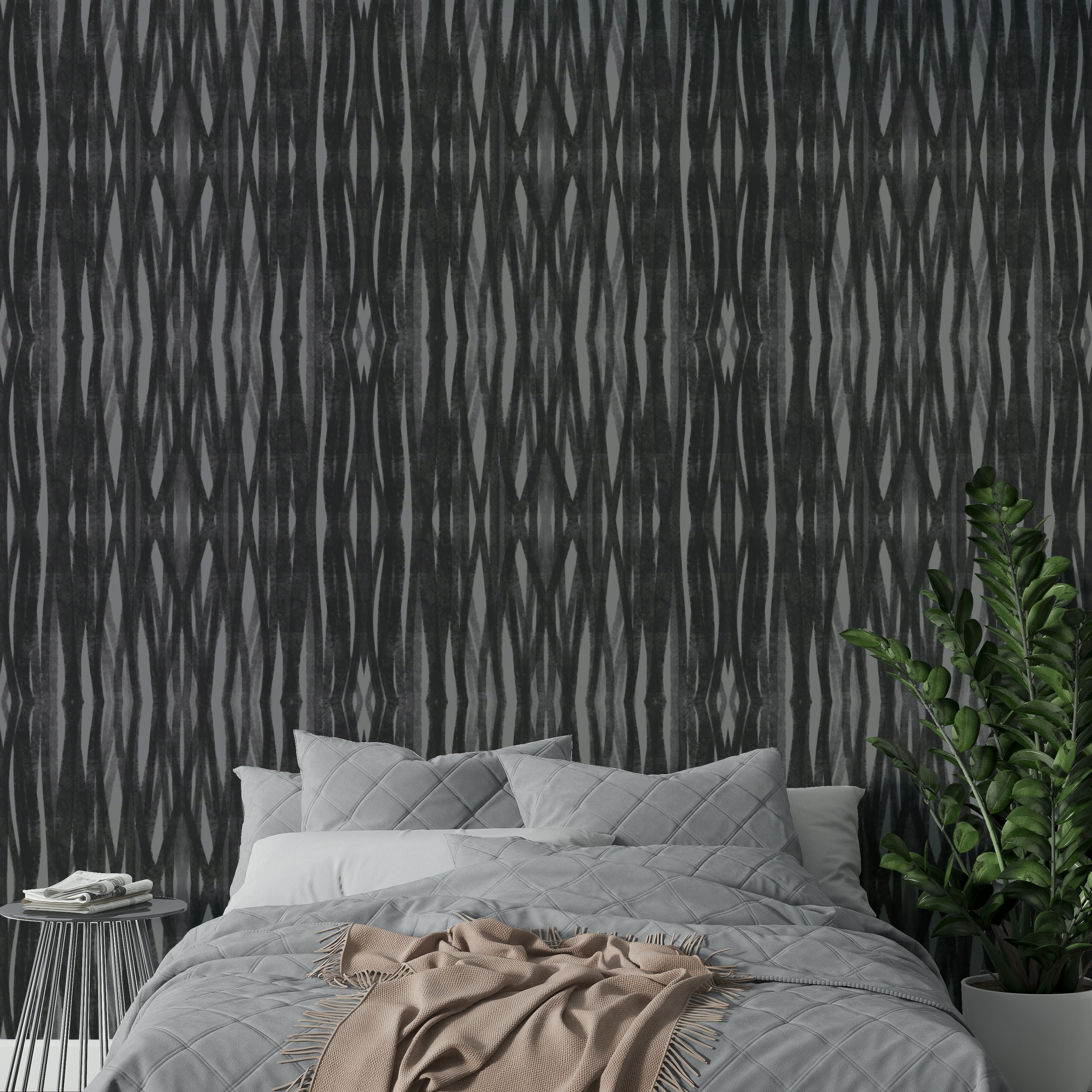 Minimalist geometric charcoal wallpaper for bedrooms