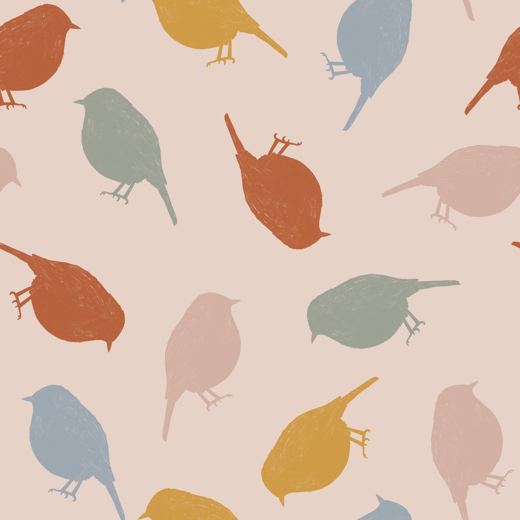 Delight in this patterned design showcasing colourful birds. The soft hues and simple style creates a calming atmosphere. It is ideal for a kids' room, nursery, or any space where you want to add a touch of playfulness. This wallpaper for walls brings a gentle, artistic charm to any space. Let these adorable birds bring a touch of outdoor serenity to your interiors. The pattern works well to bring colour to any minimalist space with subtle, yet engaging design.