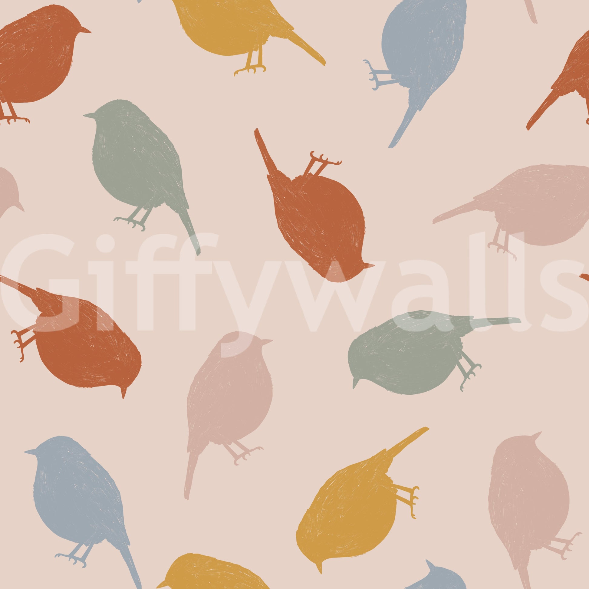 Pastel-toned birds wallpaper creating a peaceful and charming atmosphere.