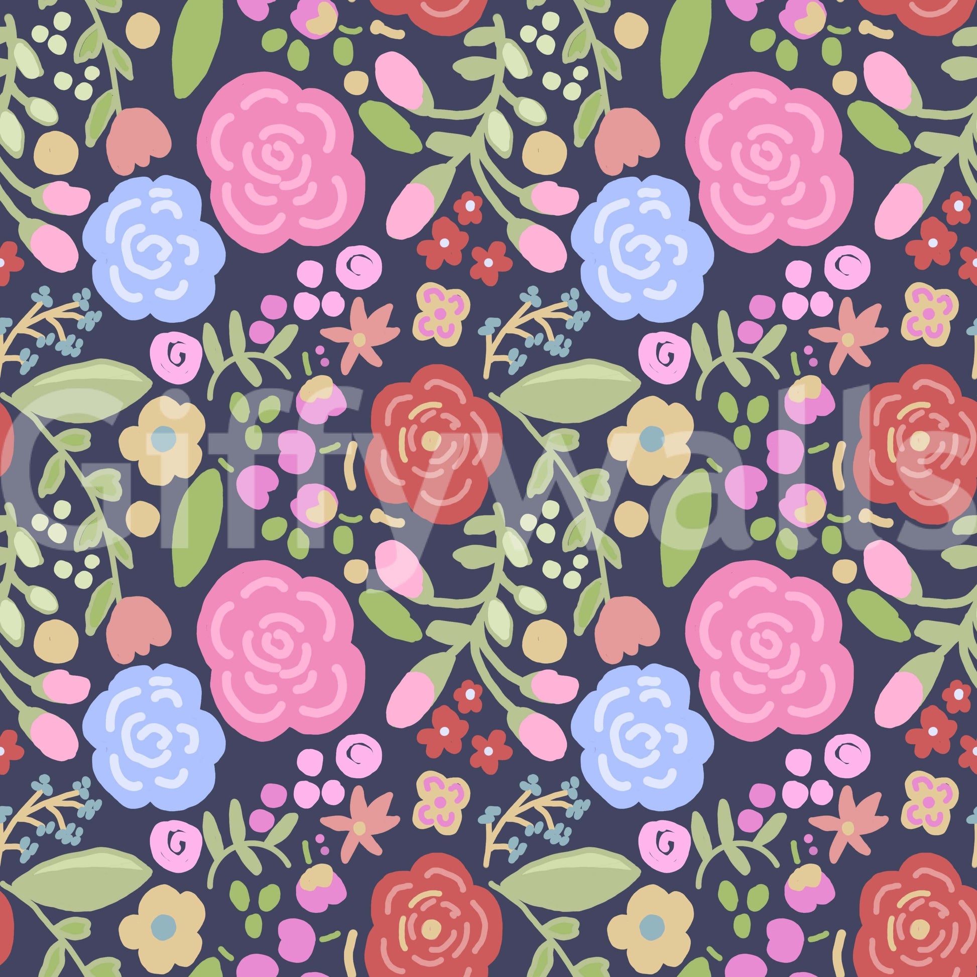 Introduce a playful touch with this floral pattern. The design features a delightful array of flowers, buds and foliage in soft colours, set against a dark background. These blooms bring a relaxed vibe to your space. This wallpaper for walls is ideal for a bedroom, living room, or nursery. It adds a touch of charm and elevates the interiors to be more visually soothing and appealing.
