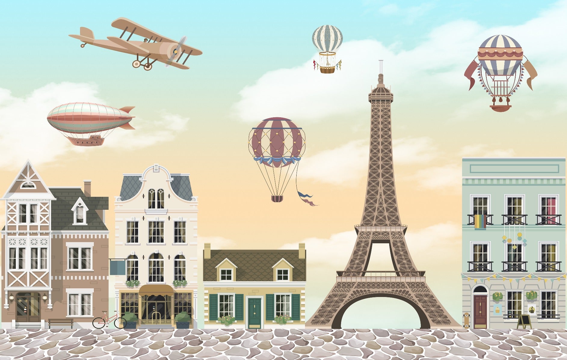 Children Room Eiffel Tower City Wallpaper Mural - Giffywalls