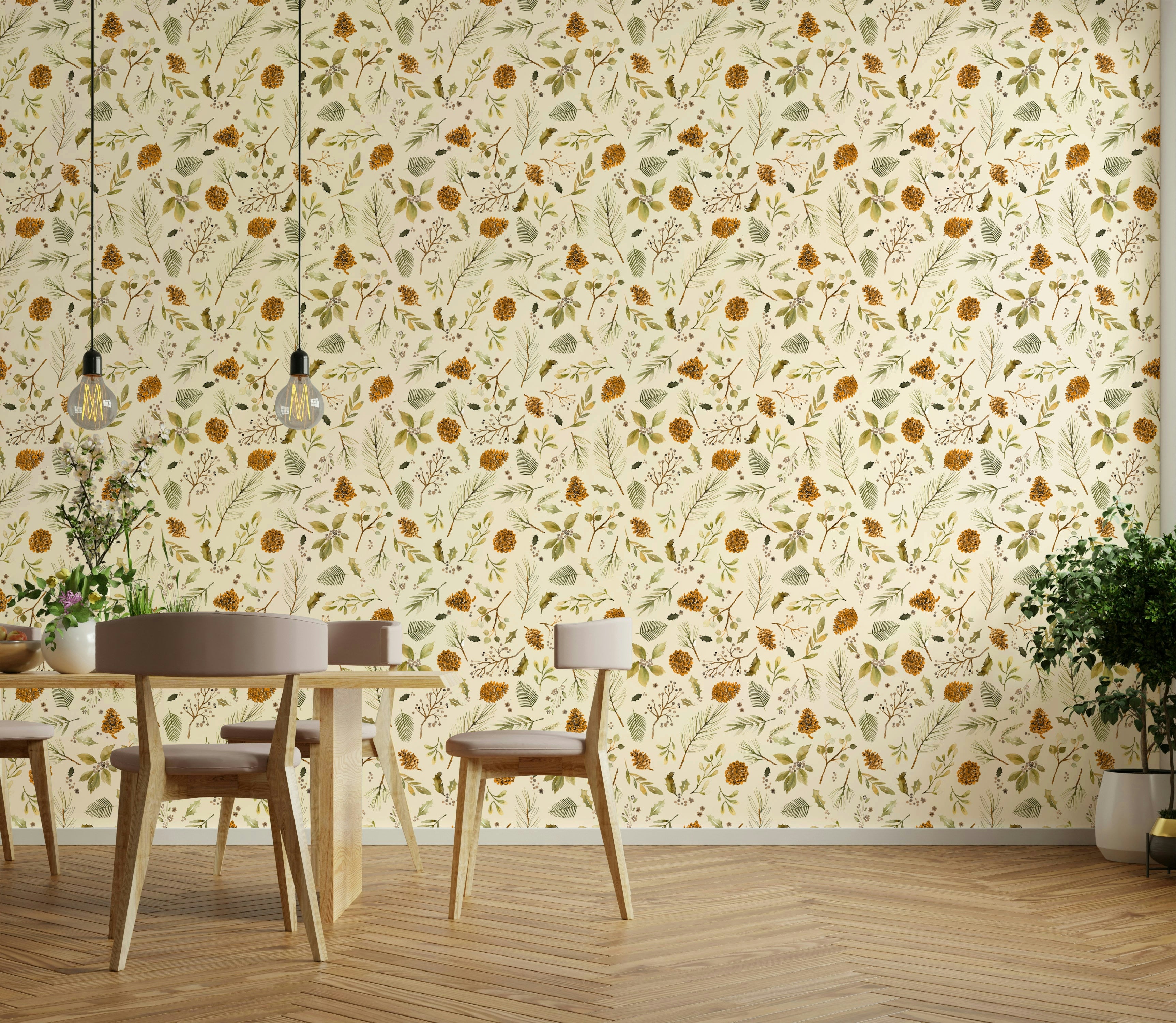 Seasonal botanical wallpaper for Christmas décor