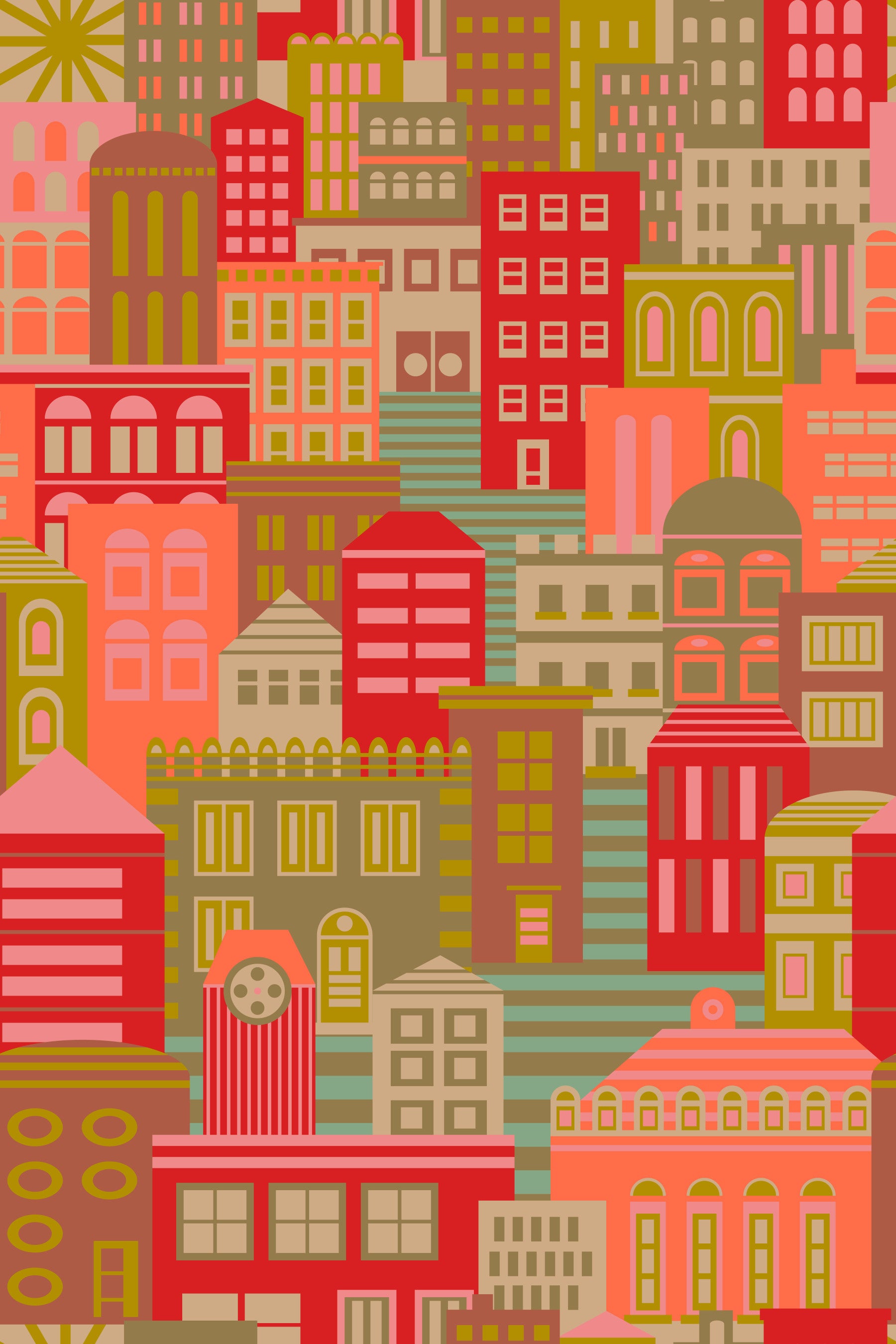 City Lights By Day Vintage Travel Bright Geometric Buildings Sunny Vintage 1950s Colours Wallpaper⁠
