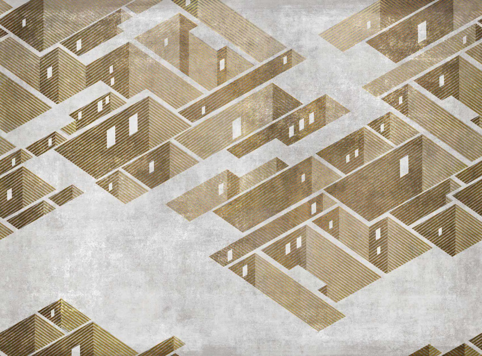Modern axonometric cityscape wallpaper for bold wall decor.