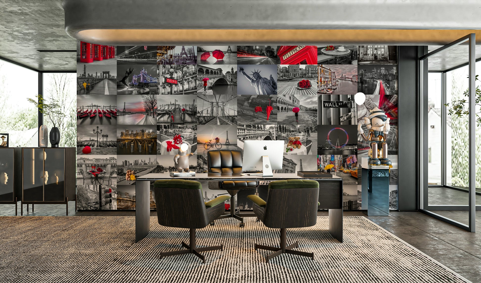 The Cityscape Collage Wall Mural is a stunning fusion of vibrant urban landmarks, designed to bring life and energy to your space. Whether you're decorating your living room, office, or bedroom, this mural's dynamic city skyline adds a modern, contemporary feel. The blend of bold colors and intricate details makes it the perfect statement piece for those who love urban art and want to create an impactful, stylish environment. Perfect for contemporary and minimalist interiors.