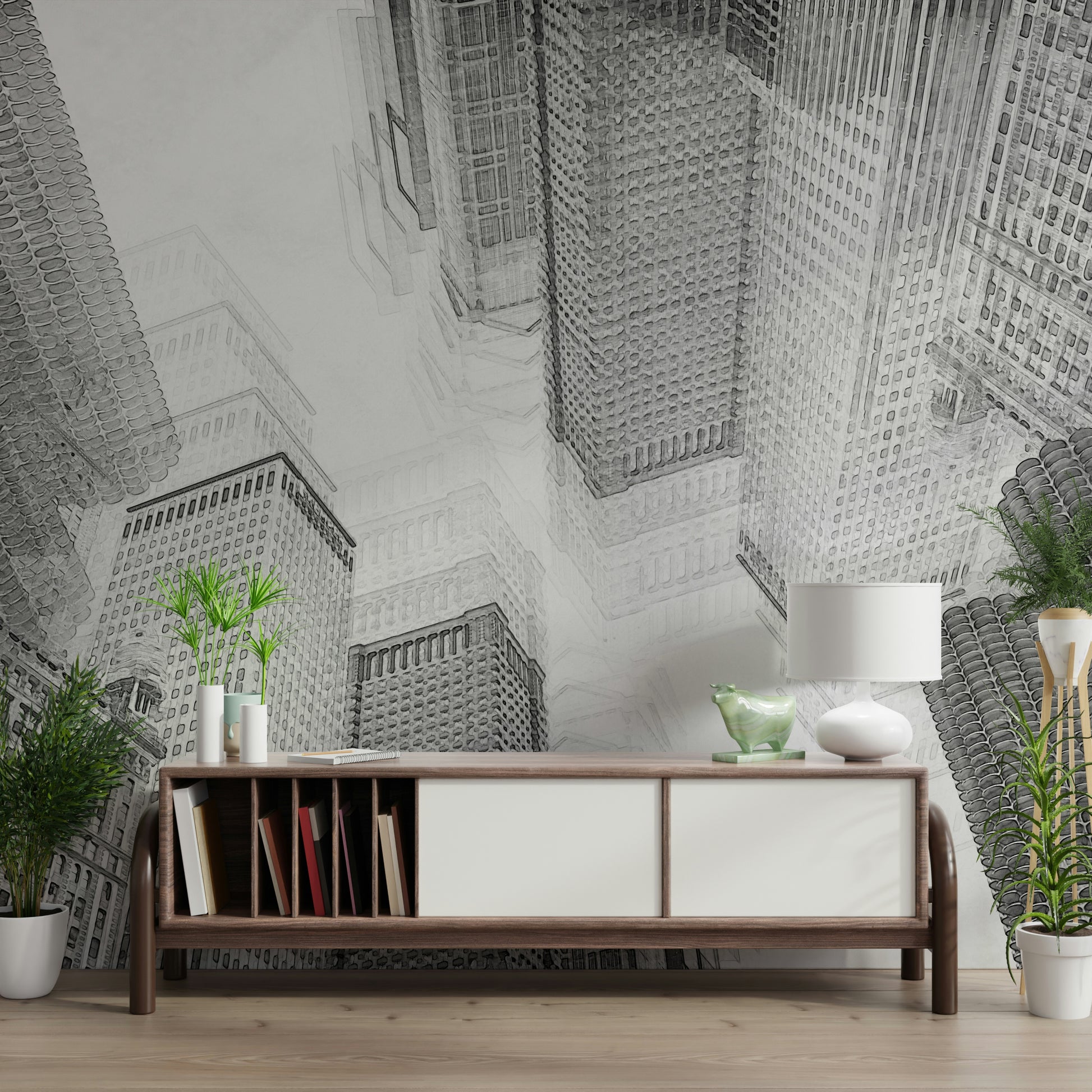 Cityscape Sketch wall covering for a chic, artistic urban interior aesthetic.