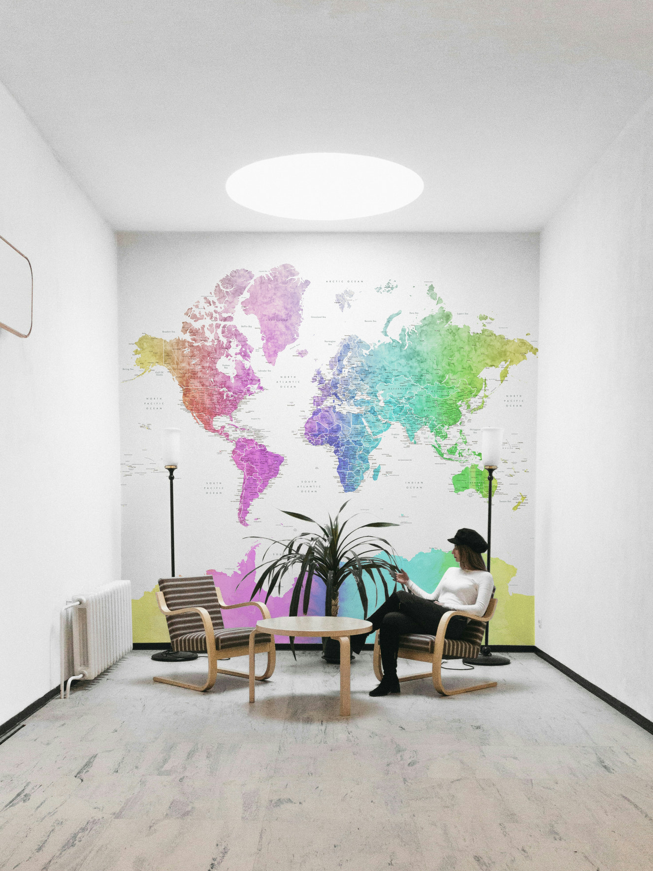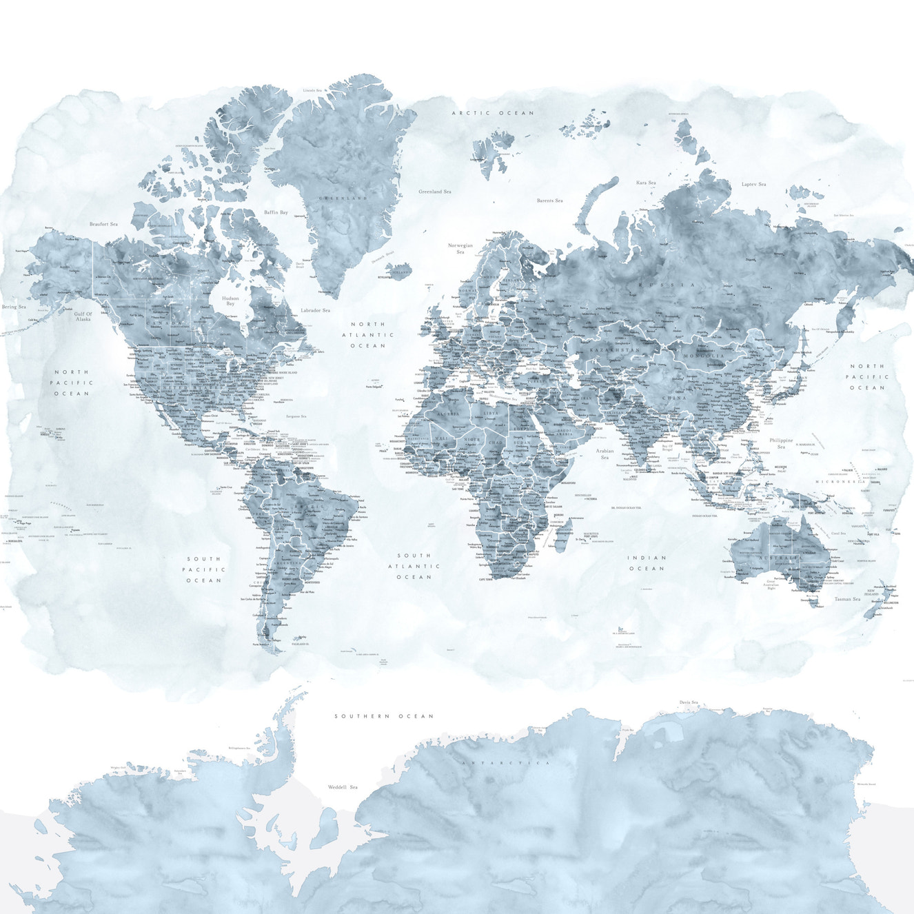 Set sail on a global adventure with the blue world map mural wallpaper. This world map wallpaper showcases the continents in a striking blue hue, making it a perfect centerpiece for any room, especially history-themed spaces. The blue wallpaper not only evokes a sense of depth and exploration but also adds a calming and sophisticated touch to the interiors. Ideal for history room decoration, this blue map mural serves both as an educational reference and an art piece, igniting the wanderlust in viewers and fostering a love for history. Its fine detailing and top-notch quality ensure durability, allowing for years of admiration and learning. Transform your space into an explorer's haven and dive deep into the wonders of our world with this captivating blue wallpaper mural.