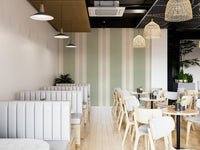 Embrace tranquility with this elegant wallpaper featuring classic multiline stripes in a soothing sage green palette. The design incorporates a subtle linen texture, adding depth and a touch of rustic charm. Multiple thin sage green stripes are elegantly spaced on a creamy off-white background, creating a balanced and visually appealing pattern. Flanking the central stripe section are wider bands of the calming sage green, further enhancing the serene atmosphere. This wallpaper is perfect for creating a peaceful and sophisticated ambiance in any room, offering a timeless and versatile design that effortlessly blends classic elegance with modern simplicity.