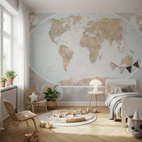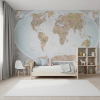 Subtle details and vintage-inspired typography lend an air of scholarly sophistication, making it a captivating focal point for any room. Whether you're an avid traveller, a history enthusiast, or simply seeking to add a touch of worldly charm to your environment, this classic world map will transport you to distant lands and ignite your imagination. Enrich your interior design with this timeless representation of our planet, a subtle yet powerful statement piece that speaks of exploration and discovery.