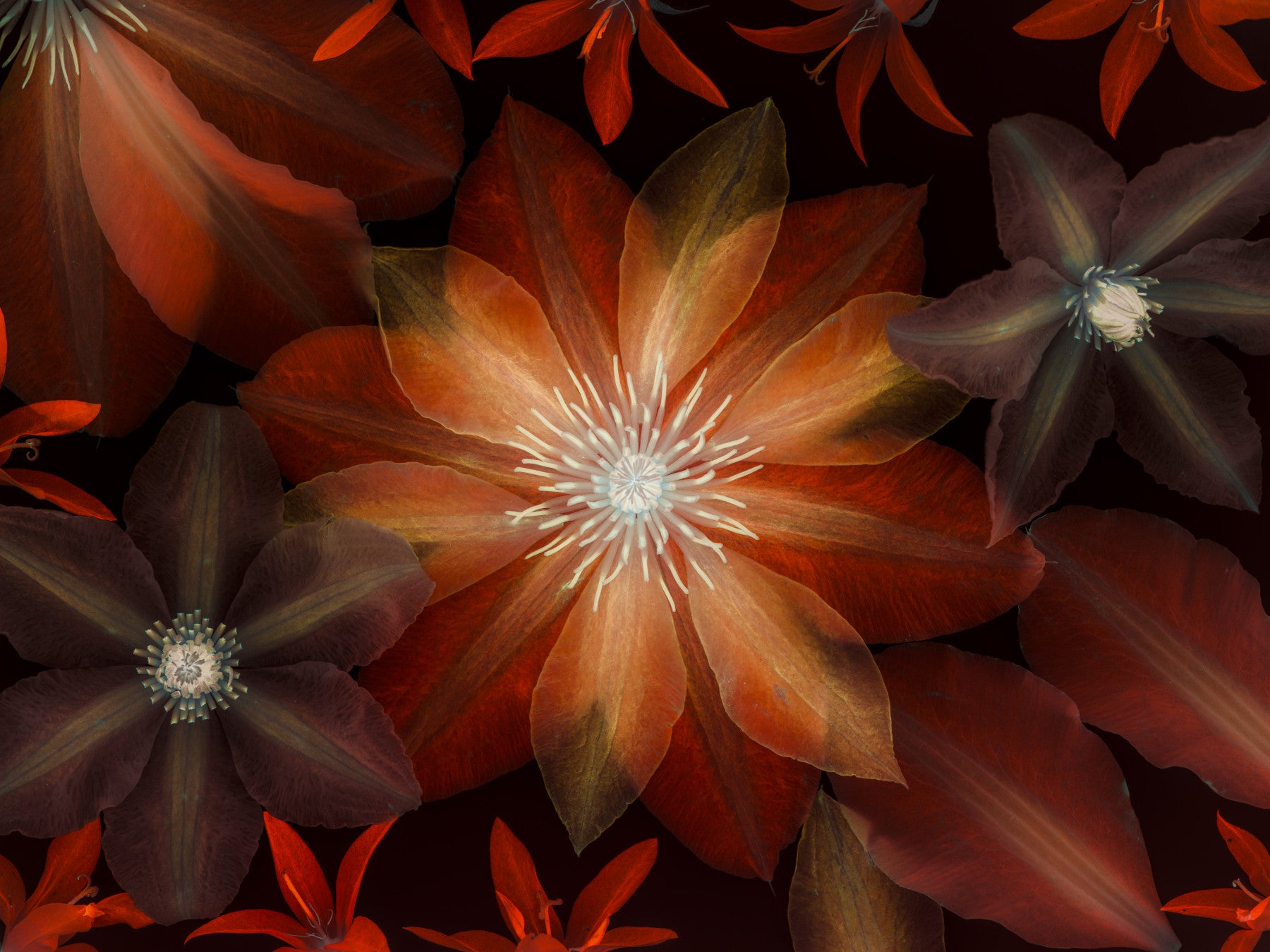 A dramatic, artistic pattern of clematis flowers spreads across your wall with the Clematis Flowers Wall Mural. This bold mural wallpaper has a moody, dark design that gives your space a sense of confident elegance. The rich, deep colors and gentle light of this beautiful wallpaper for walls will make any room feel both contemporary and chic.