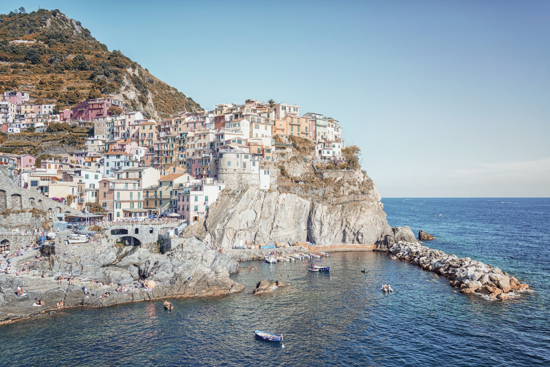Transform any room with this scenic wallpaper for walls, capturing a breathtaking view of a coastal village clinging to a cliff. The soft colour palette of pastels and earth tones lends a peaceful ambience, making it perfect for bedrooms or bathrooms. The layered composition, with its houses, cliff, and sea, creates depth and visual interest. Bring a sophisticated, travel-inspired aesthetic to your home. Consider it for a feature wall to craft a calm oasis.
