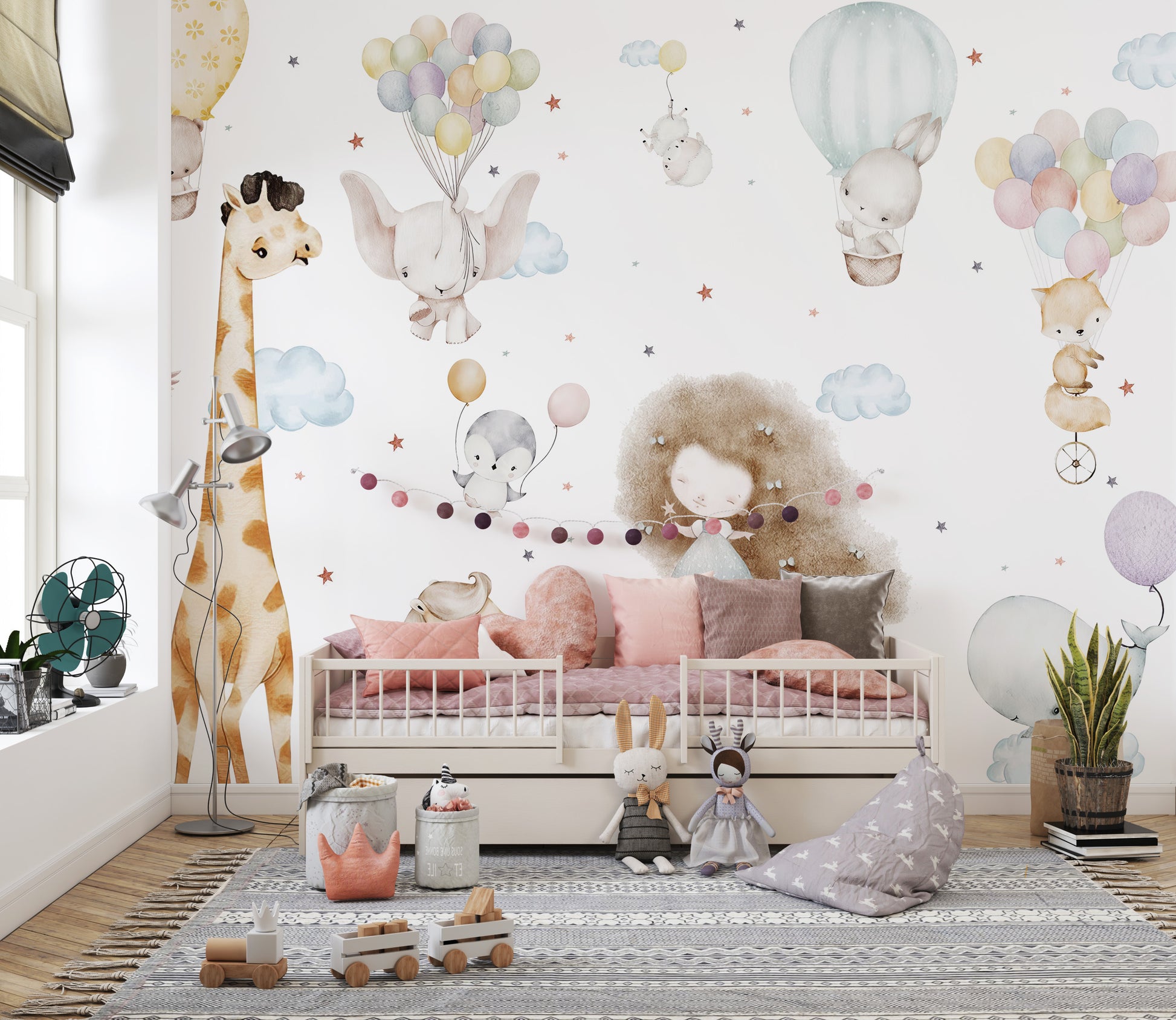 Cloud Nine wallpaper with adorable playmates in a mural design.
