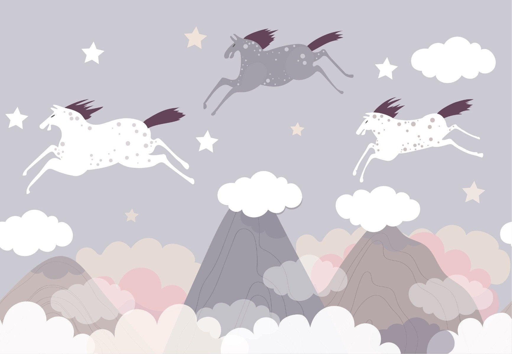 Clouds and Flying Horses wallpaper for walls