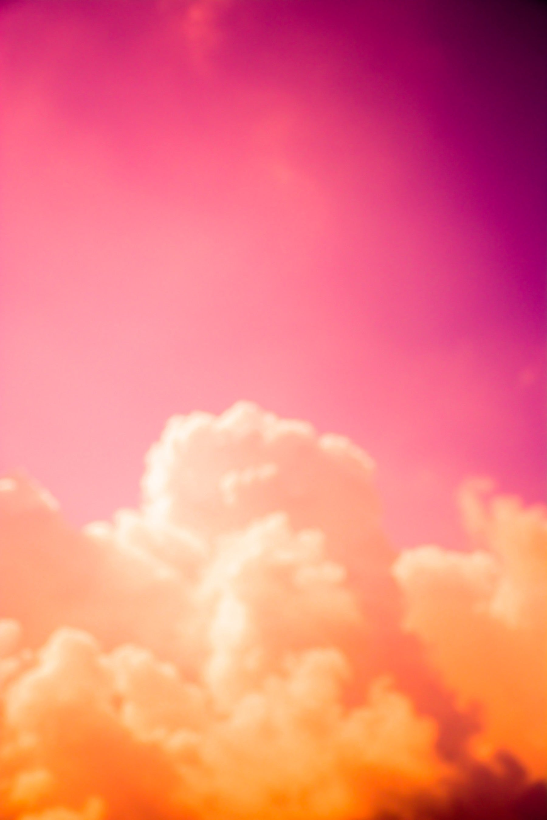 Immerse yourself in the dreamy allure of Clouds III a captivating wallpaper that transforms your screen into a canvas of surreal beauty. This image showcases a breathtaking display of ethereal clouds bathed in a vibrant gradient of magenta and soft orange hues. The blurred focus creates a sense of mystery and wonder, inviting you to lose yourself in the tranquil atmosphere. "Clouds III" evokes feelings of serenity, peace, and a touch of otherworldly magic, perfect for adding a splash of color and tranquility to your device. Let your imagination soar as you gaze upon this unique, abstract depiction of the sky, and experience the calming embrace of a dreamy, cloud-filled escape.