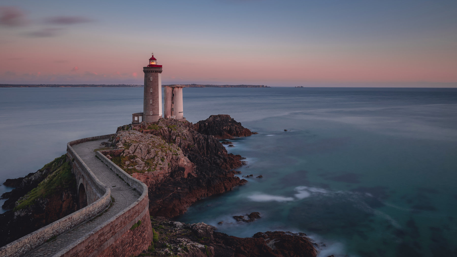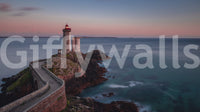 Capture the tranquil allure of the coast with this lighthouse scene. Soft pink skies meet the dark teal sea, creating a calming mood. The sturdy stone structure provides an anchor for the eye, balanced by the gentle motion of the water. This wallpaper for walls adds a refined elegance to any room, working beautifully in living rooms, bedrooms, or even a home office. It complements spaces aiming for a serene, coastal aesthetic.