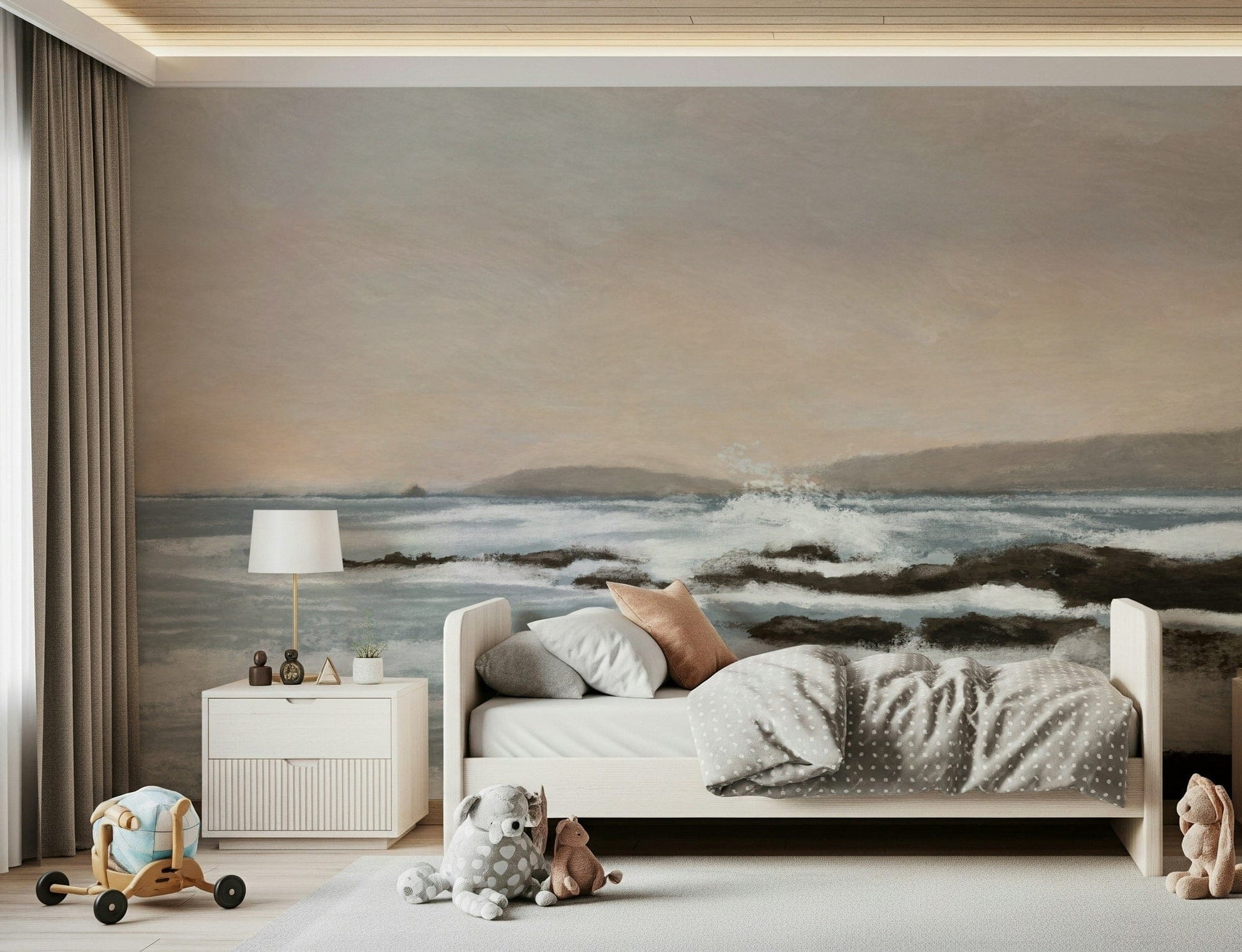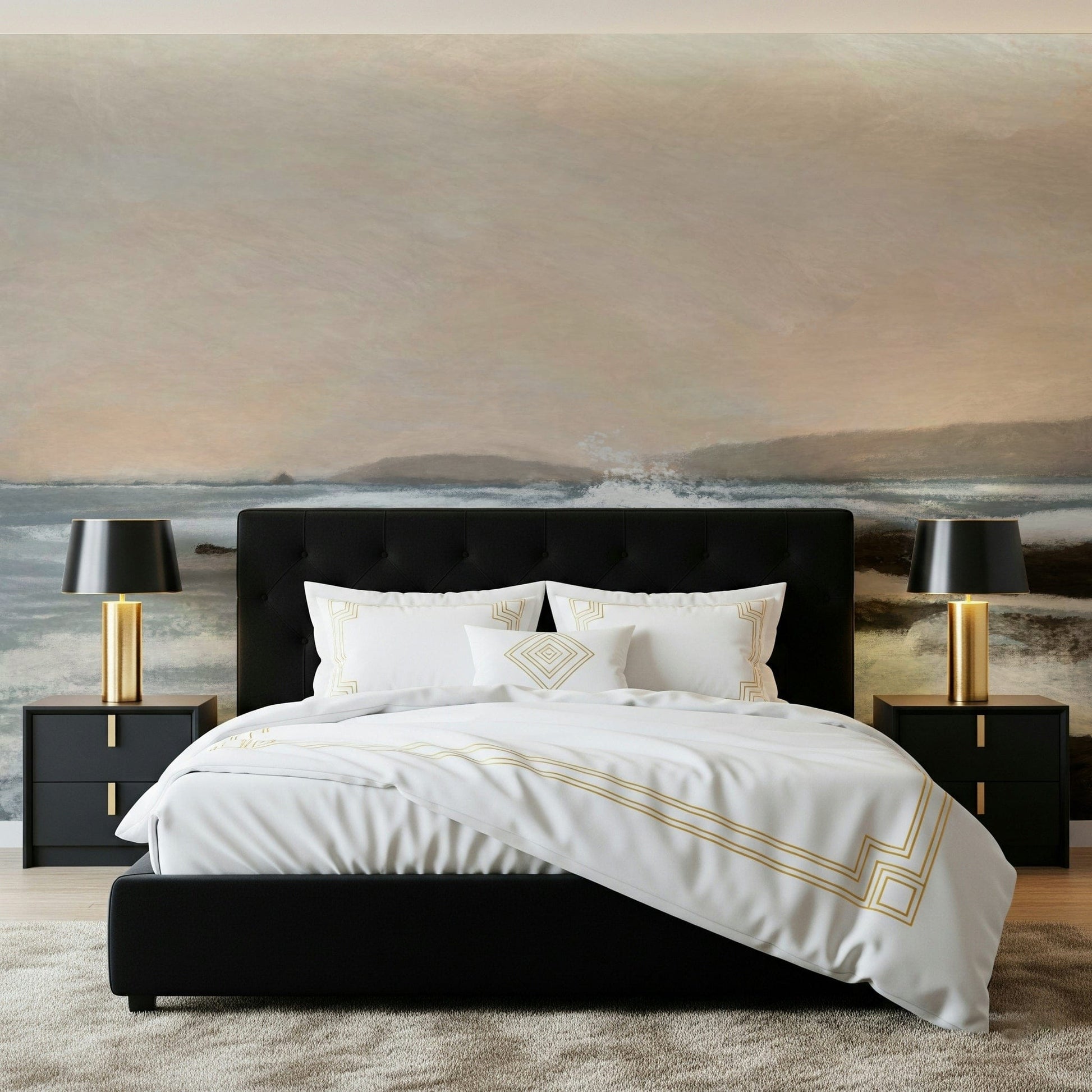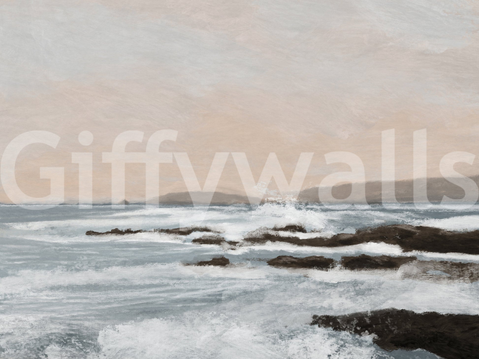 Invite the ocean's calm into your space with this peaceful wallpaper. The gentle brushstrokes capture a serene coastal scene, featuring soft blues, creamy whites, and earthy browns. This wallpaper for walls evokes a sense of tranquility. It works beautifully in a living room, bedroom, or office, adding a touch of nature-inspired art. The subtle colours and textures make it a versatile choice that complements various interior styles, from modern to rustic.