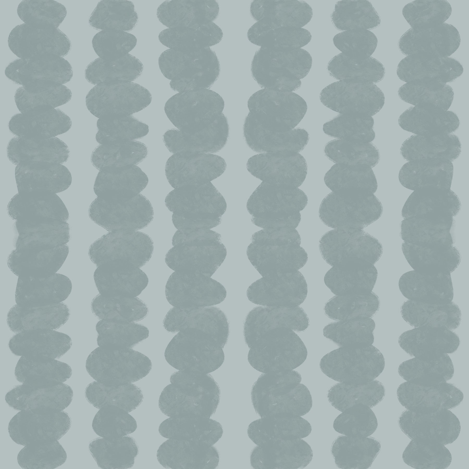 Drift into a state of relaxation with this soft and subtly textured wallpaper. The design features rows of abstract shapes, like smoothed coastal pebbles, rendered in a gentle, watery gray-blue hue. This pattern evokes a feeling of calm, making it ideal for creating a serene space in bedrooms, bathrooms, or reading nooks. The vertical arrangement adds height, while the soothing colors promote rest and focus. Its understated elegance makes it perfect for both modern and traditional interiors.