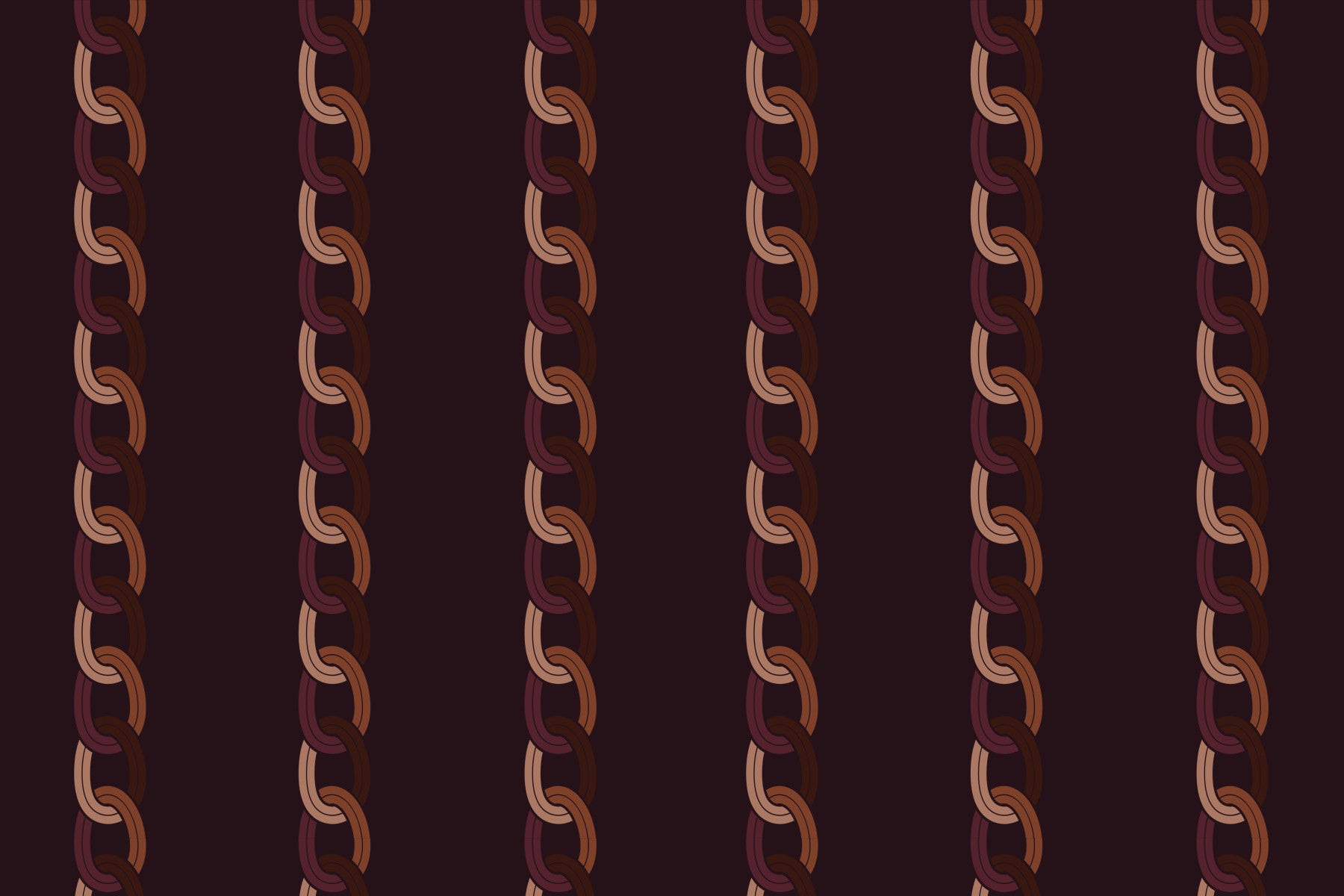 Dress up your home with this stylish chain pattern! The design features an interlocking pattern in shades of brown and plum, set against a dark background. Perfect for a living room, dining room, or bedroom, this wallpaper for walls adds a touch of sophistication. It complements modern interiors and creates a cozy, inviting space. The vertical stripe design can also make a room feel taller. Its rich tone creates a very warm atmosphere.