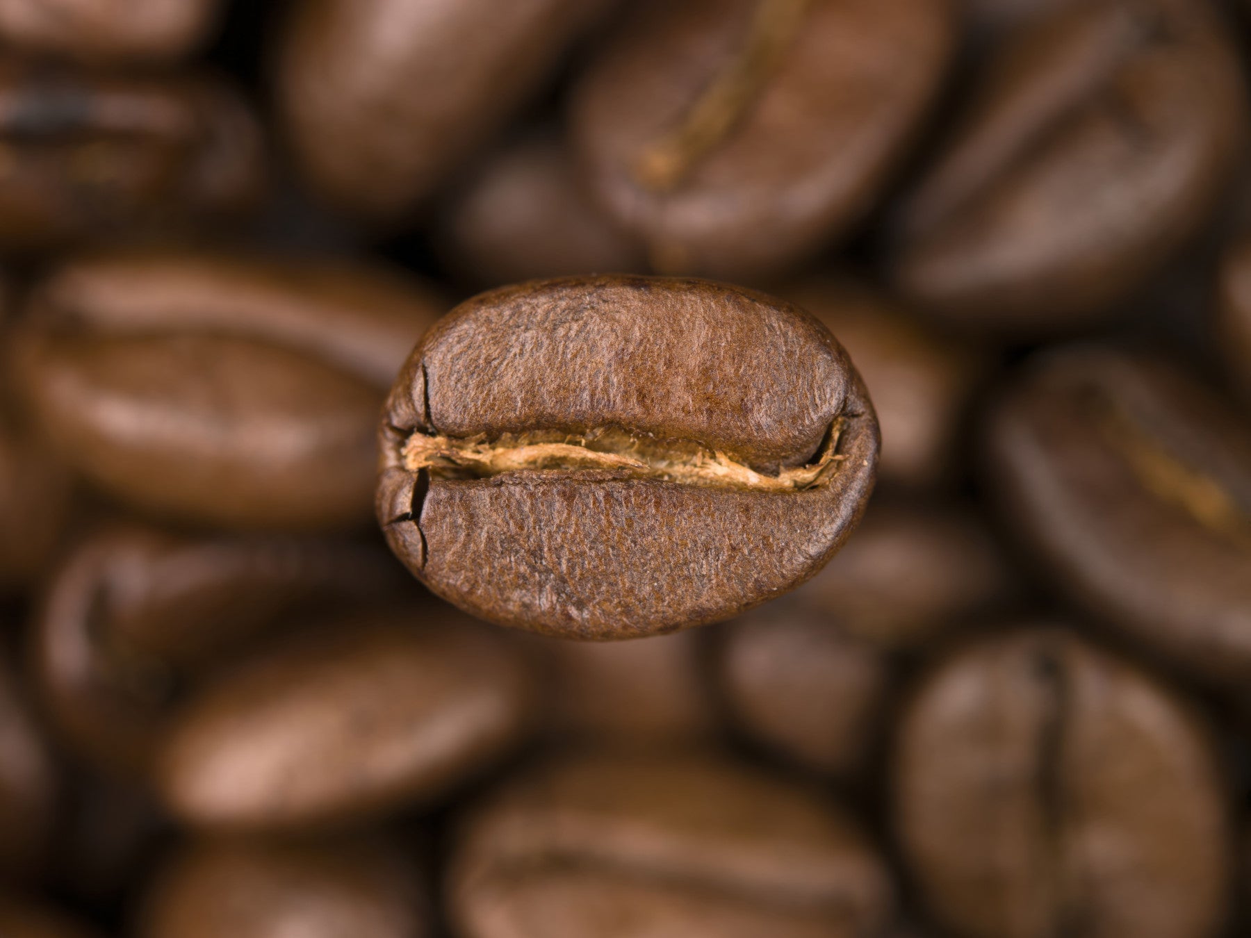 A bold wallpaper that highlights a single coffee bean in crisp focus, perfect for adding a café-style warmth to a room.