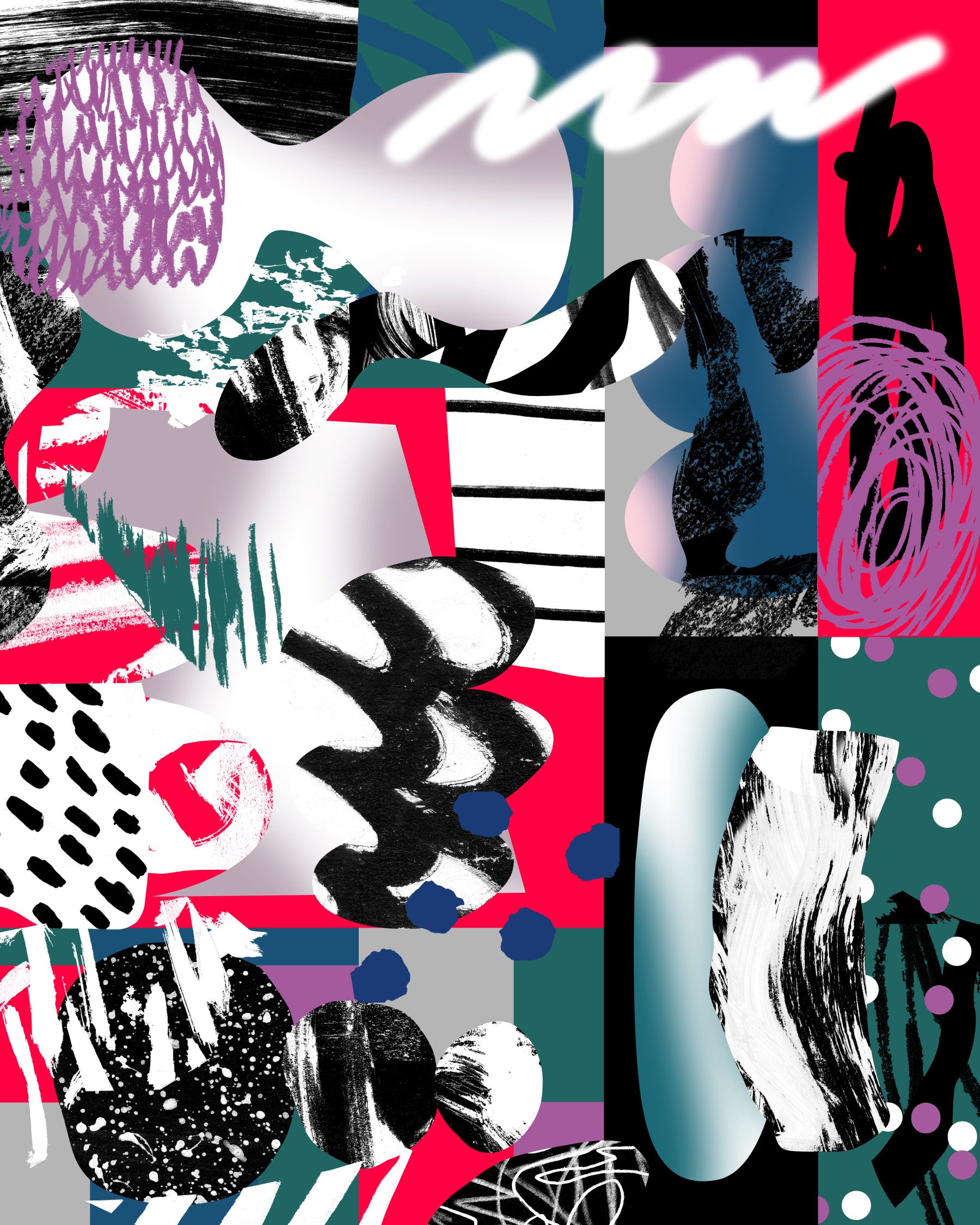 Immerse yourself in a world of contrasting colors and intriguing shapes with this captivating wallpaper. Watch how shades of red, teal, black, and violet dance together in a mix of geometric and organic forms. The unique composition makes it a perfect fit for a creative studio, teen room, or modern living space. Elevate the feel of your interior and experience design at its finest. Consider this artful wallpaper for walls to add a bold graphic touch.