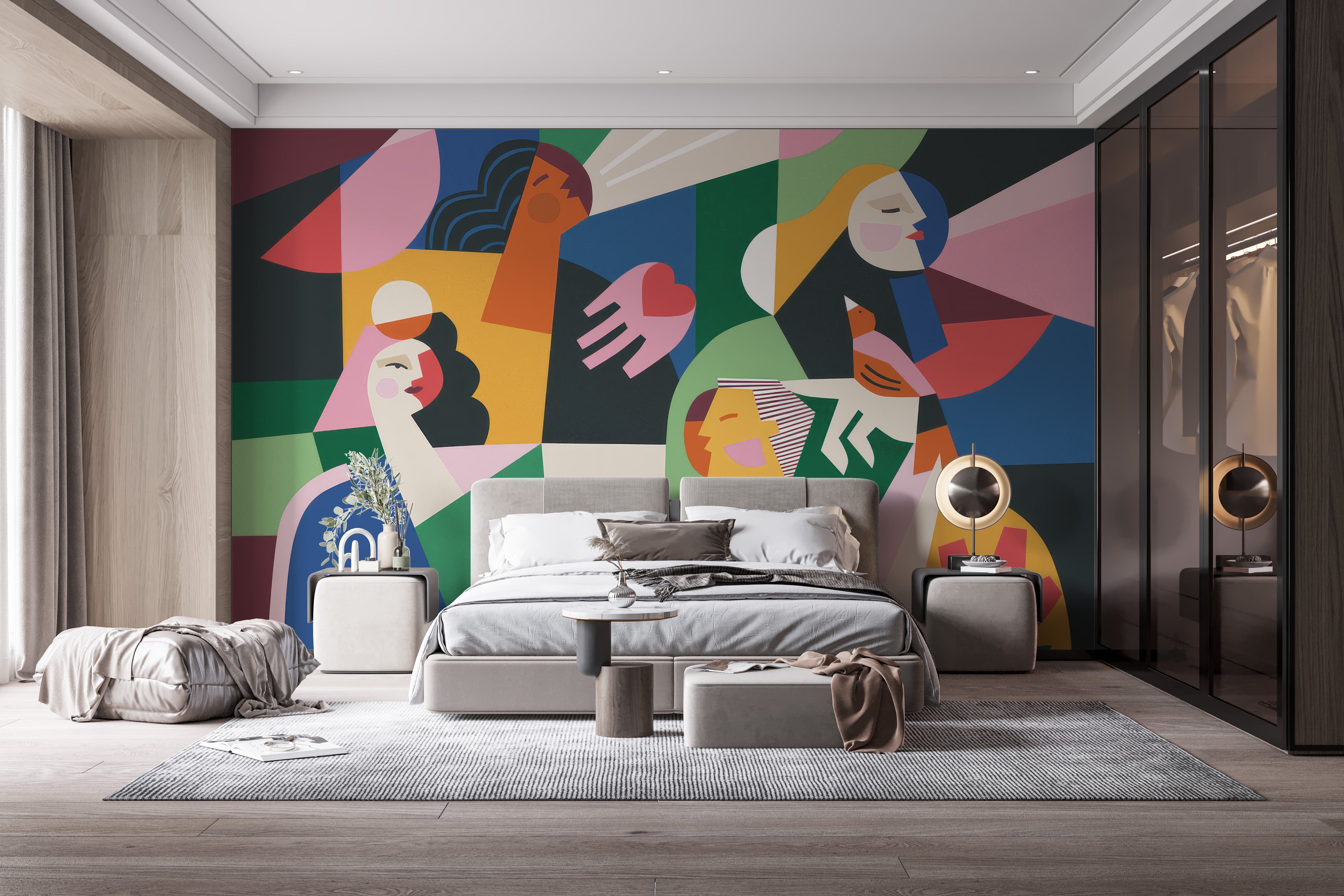 Refresh your walls with the colorful fashionable women's mural, a striking abstract wallpaper. This design showcases an ensemble of stylized women, each brimming with vibrant hues and chic sophistication. It's an instant focal point that infuses your room with energy and personality, ensuring that your home makes a bold, stylish statement. Opt for this mural to express your flair for contemporary aesthetics and a love for vivid storytelling through design.