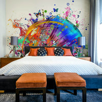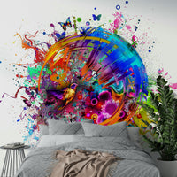 Bring vibrant energy to your screen with this captivating wallpaper. A kaleidoscope of color explodes from a central sphere, reminiscent of a jewel, adorned with stylized hummingbirds and butterflies in flight. The dynamic interplay of paint splatters and swirling designs creates a sense of motion and joy. This abstract artwork is a perfect blend of nature's beauty and artistic expression, offering a visually stimulating and uplifting experience. The rich hues and intricate details make this a stunning addition to any desktop or mobile device, transforming your digital space into a vibrant, fantastical world. Ideal for those who appreciate bold aesthetics and a touch of whimsical charm.