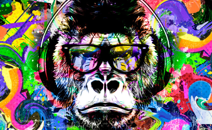 Vibrant colorful monkey graffiti wallpaper mural for walls.