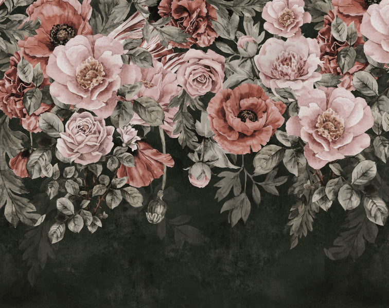 Timeless botanical mural with roses