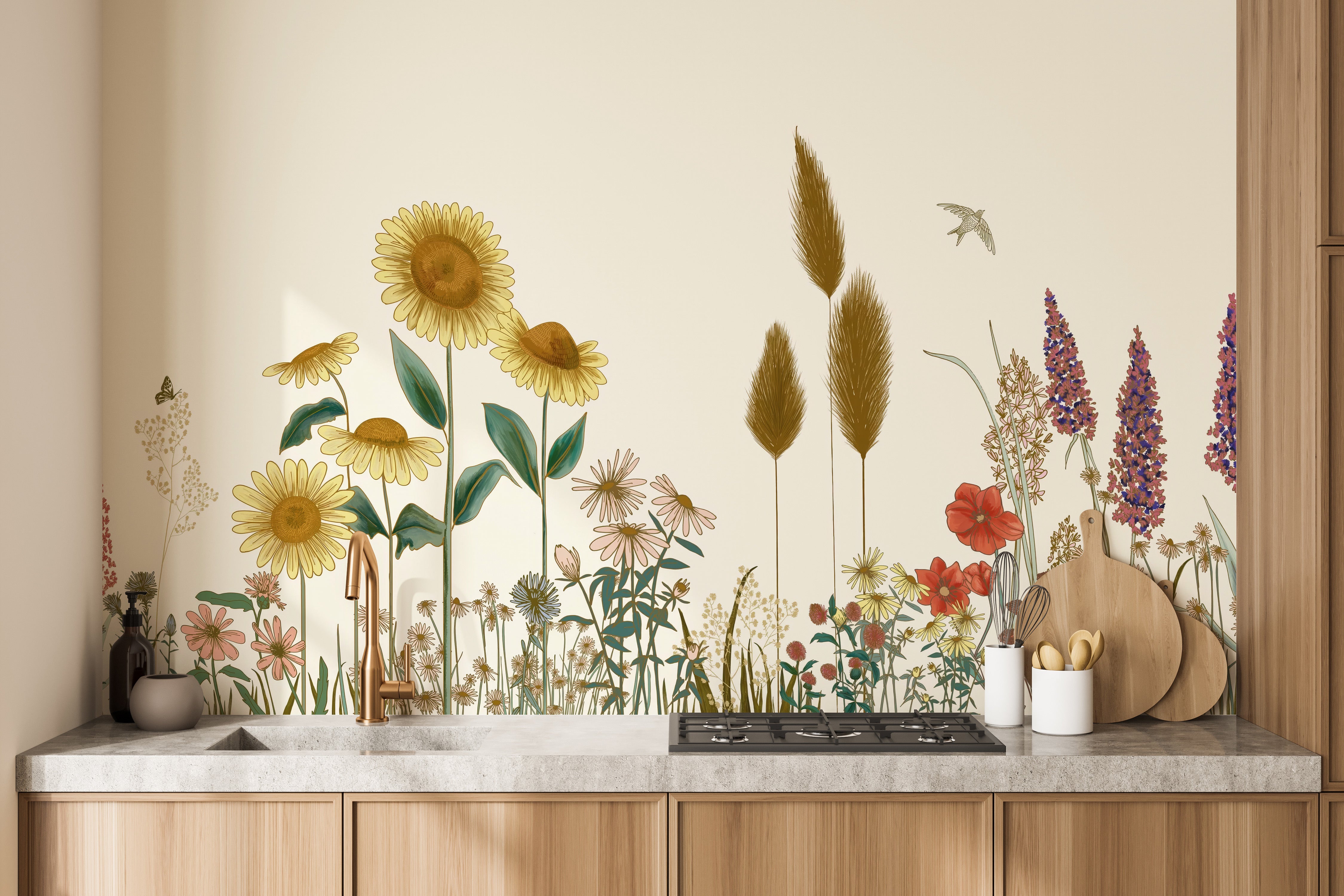 Colorful Sunflower Field Wallpaper Mural - Giffywalls