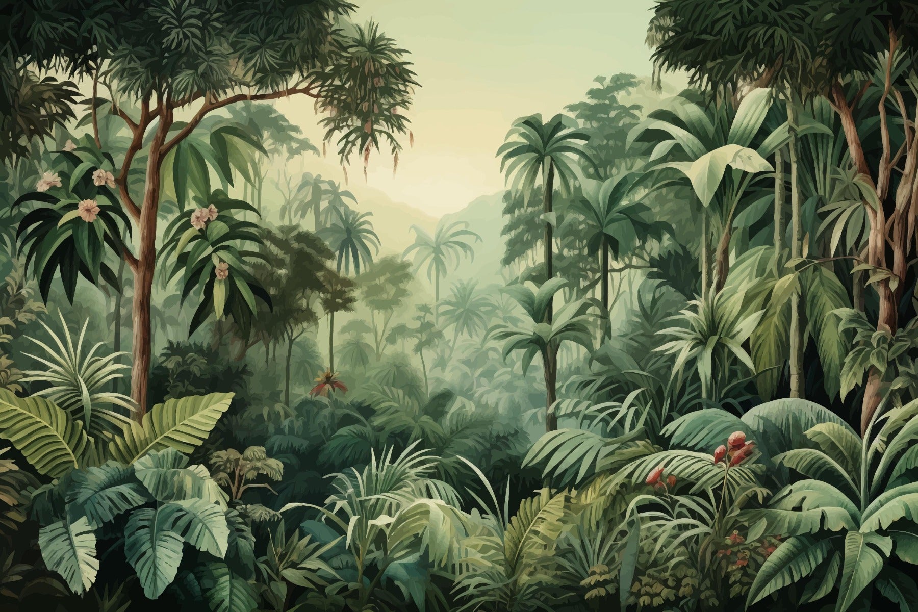 Misty Forest Colorful Tropical Scene Tree Wallpaper Mural - Giffywalls