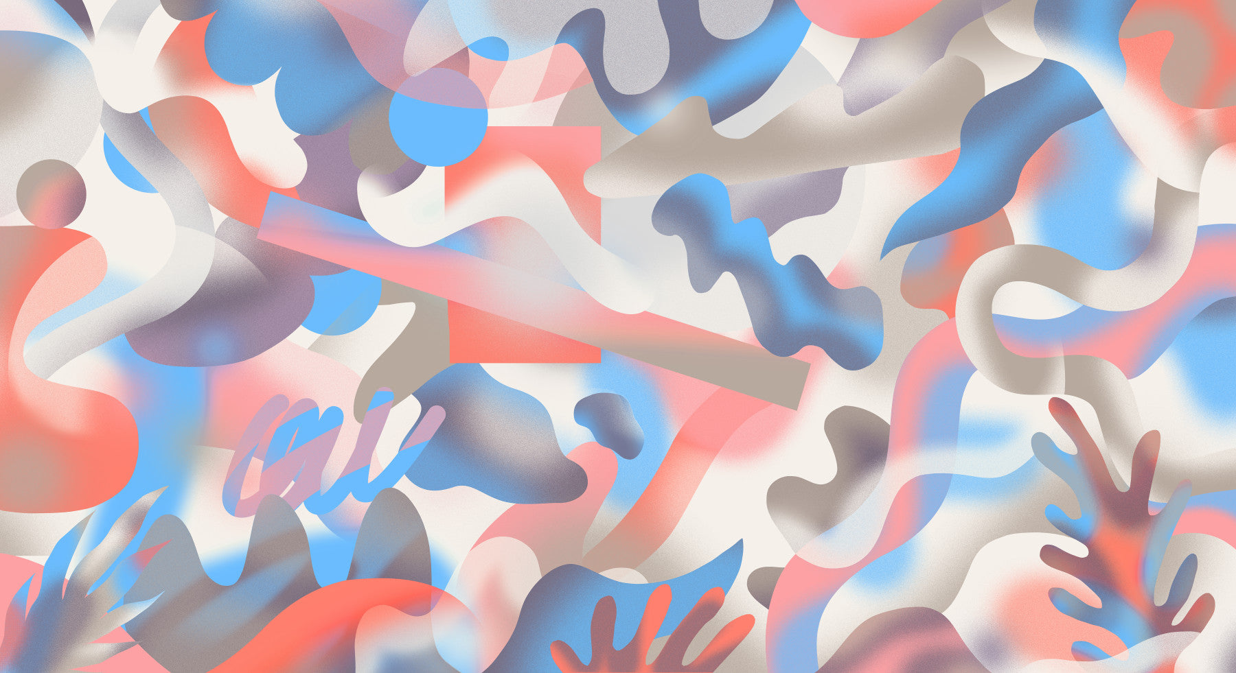 Immerse yourself in a dreamy vision. This unique design features fluid shapes in coral, blue, and neutral tones, crafting a captivating abstract scene. The soft gradient effect adds depth and movement. Use this wallpaper for walls to transform any room with its modern style, making it a perfect choice for a living room, bedroom, or study. The playful composition easily complements contemporary design.