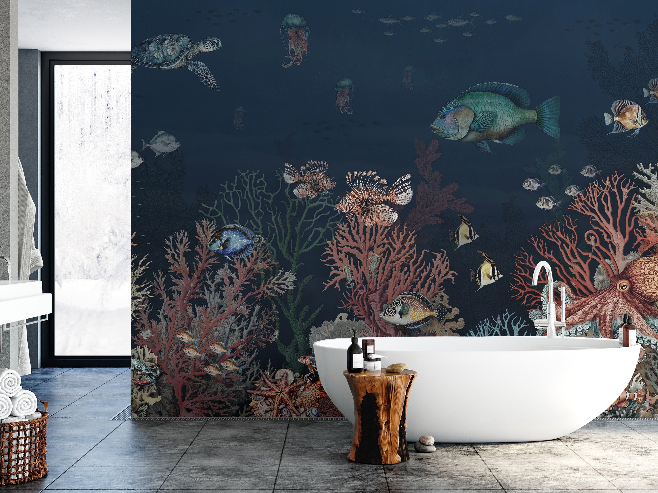 Ocean-inspired mural with coral wonders